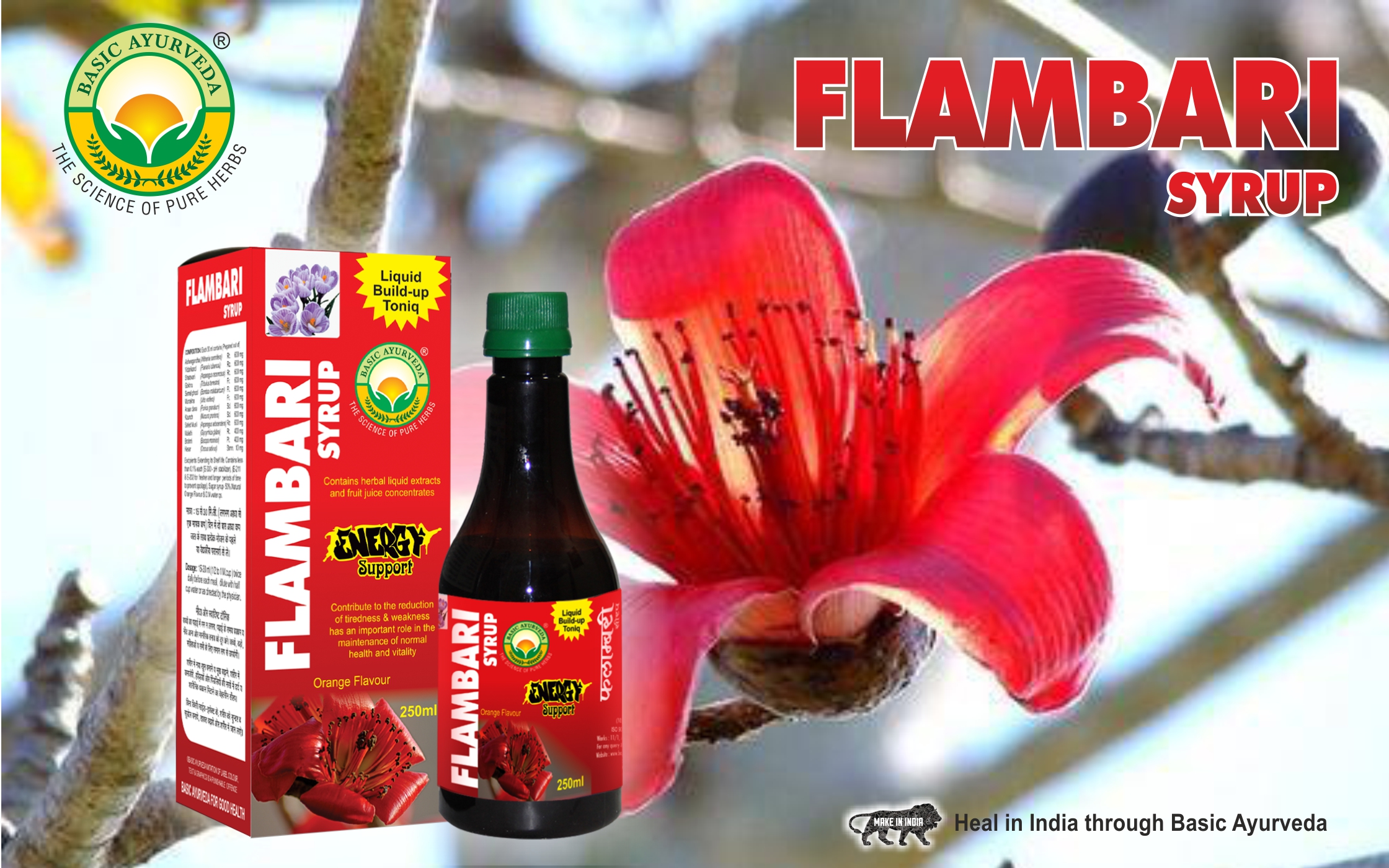 • Basic Ayurveda's Flambari syrup orange flavor contains herbal liquid extracts and fruit juice concentrates. It helps energy support.