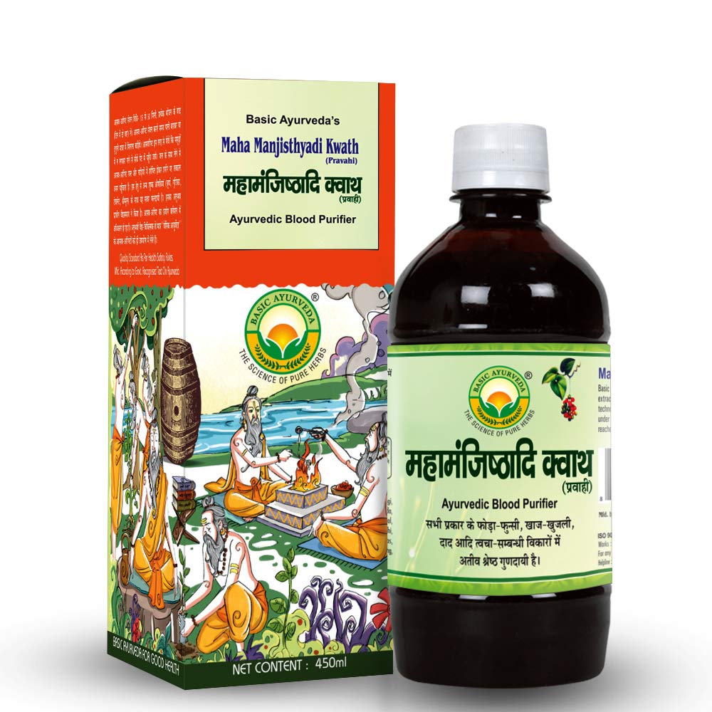 • Basic Ayurveda Maha Manjisthadi Kwath is a traditional ayurvedic formulation accurately composed that is available in the form of liquid and is mainly useful for skin problems and acts as a blood purifier.