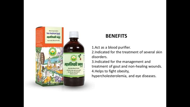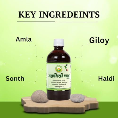 • Maha Manjisthadi Kwath is a detoxifying that cleanses the blood brings a glow to the skin and gets healthy skin. It is prepared from natural herbal extracts and has no side effects.