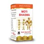 • Moti Bhasma also called (Mukta Bhasma) is a natural supplement for calcium that helps joints bones and muscles and delivers good functionality to nerves bones and cells. It provides comfort for digestive health.