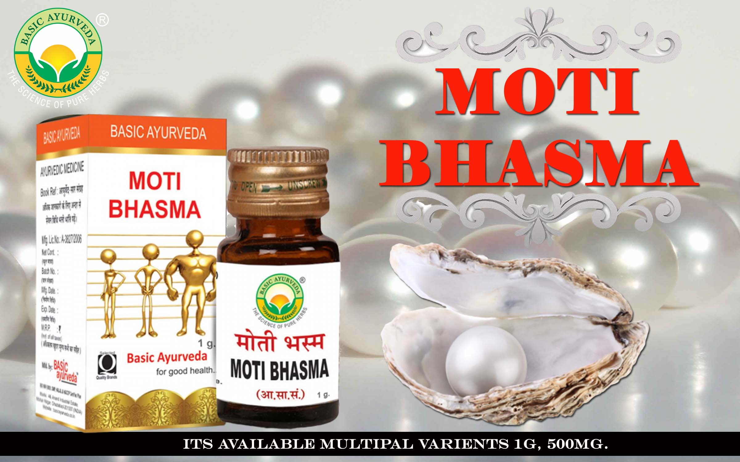 • Basic Ayurveda Moti Bhasma is an ayurvedic formulation in powder form to facilitate cough & cold. It has antioxidant antacid and muscle relaxant properties.