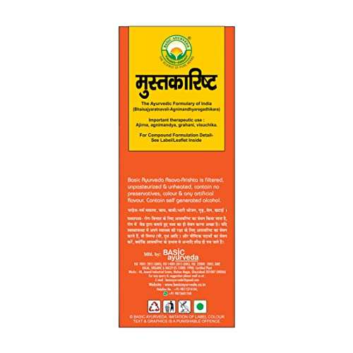 • Basic Ayurveda Mustakarishta is a traditional ayurvedic formulation accurately composed that is available in the form of liquid and is useful for the problems of digestive health.