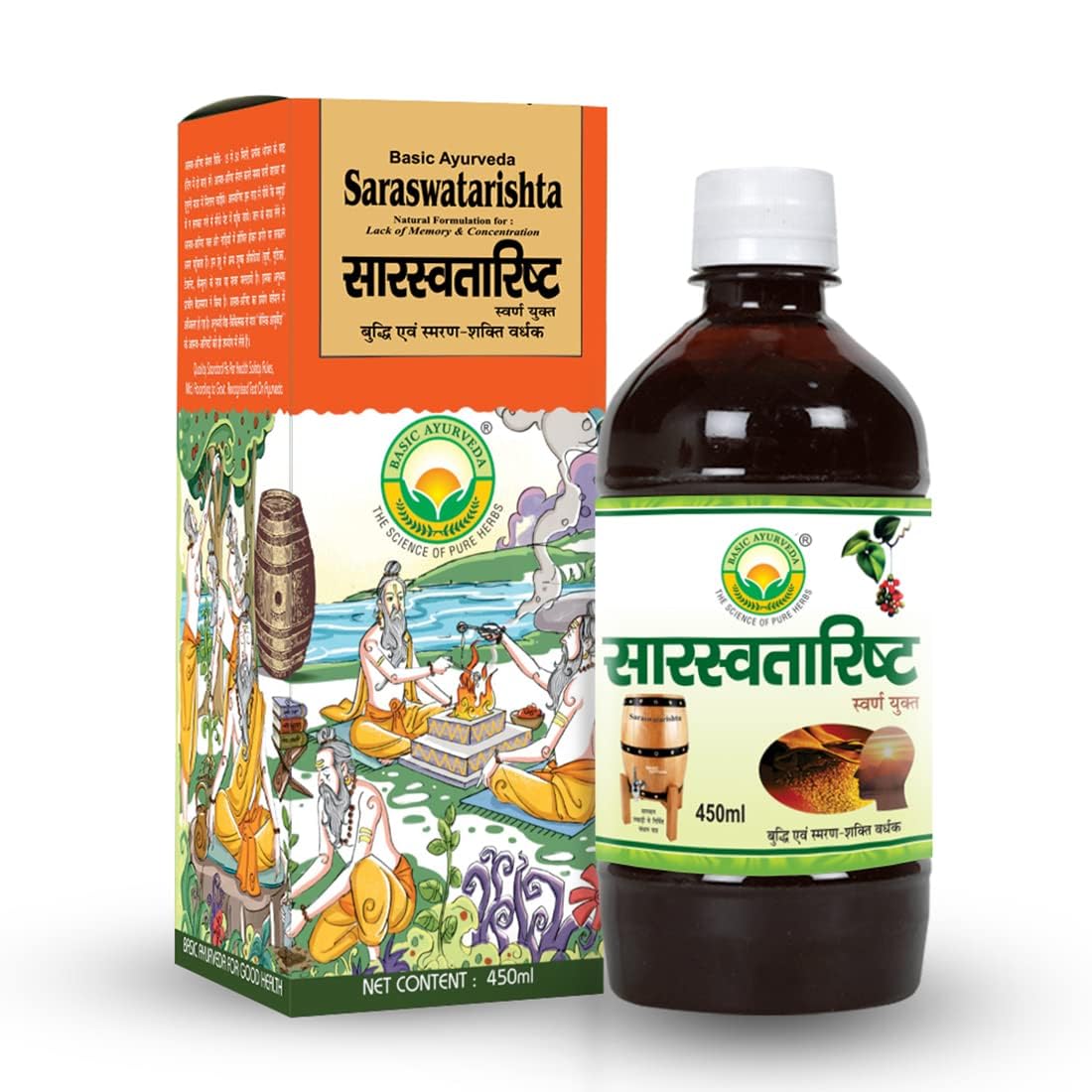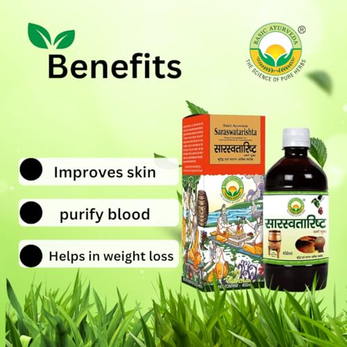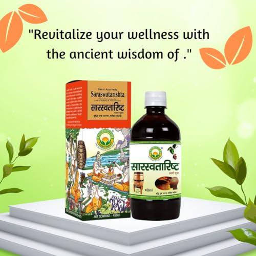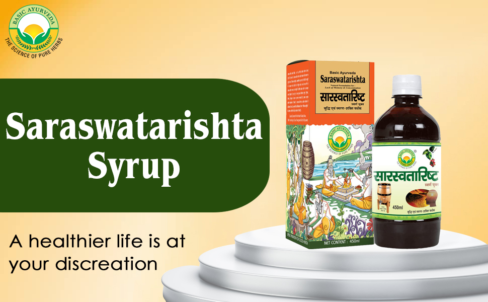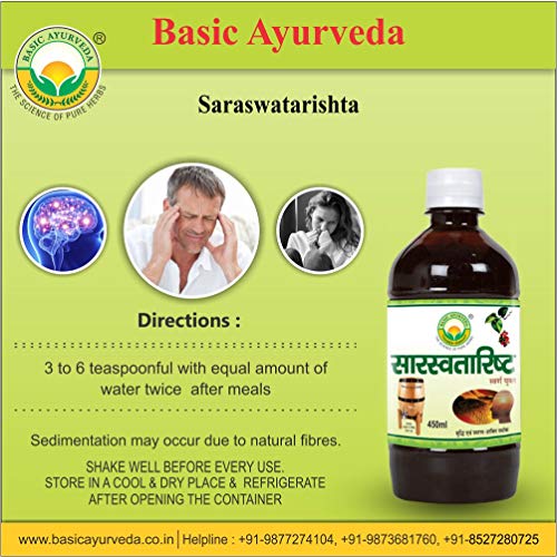 Basic Ayurveda Saraswatarishta Syrup Formulation With Gold | Ayurvedic Supplements For Helping The Body Adapt To Stress And Promote Mental Clarity- 450Ml (Pack Of 3)