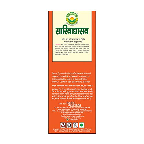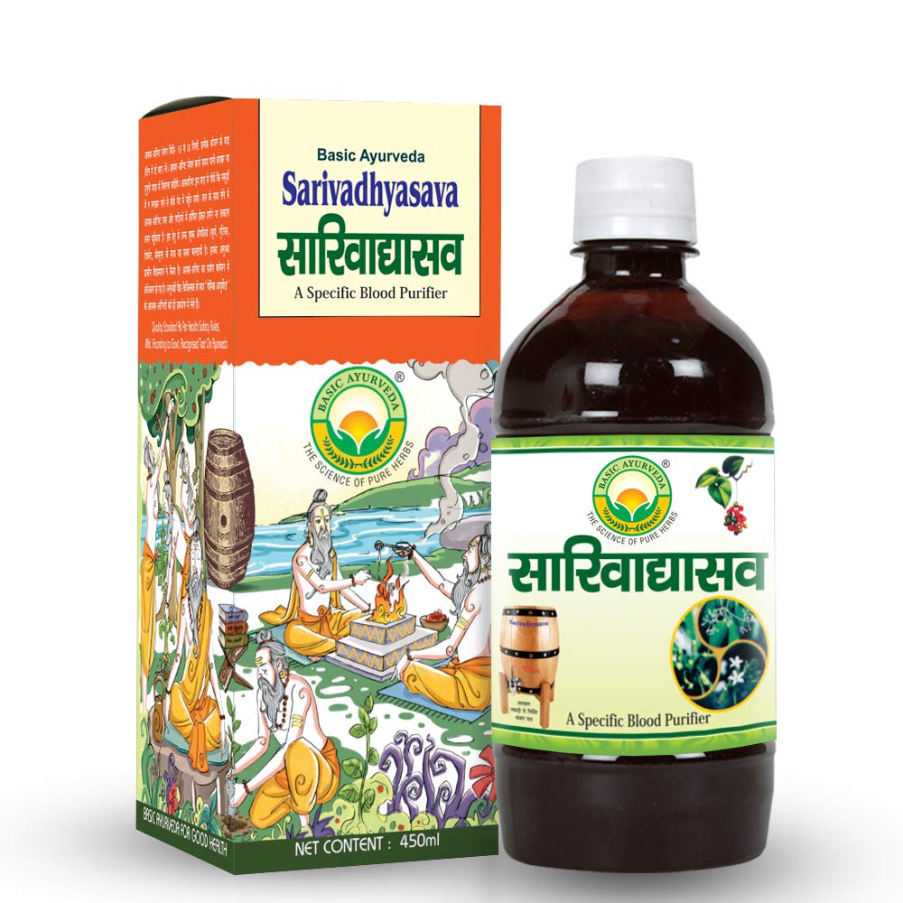 • Basic Ayurveda Sarivadhyasava is a polyherbal Ayurvedic tonic. It is dark brown fermented liquid preparation and has excellent blood purifying properties.