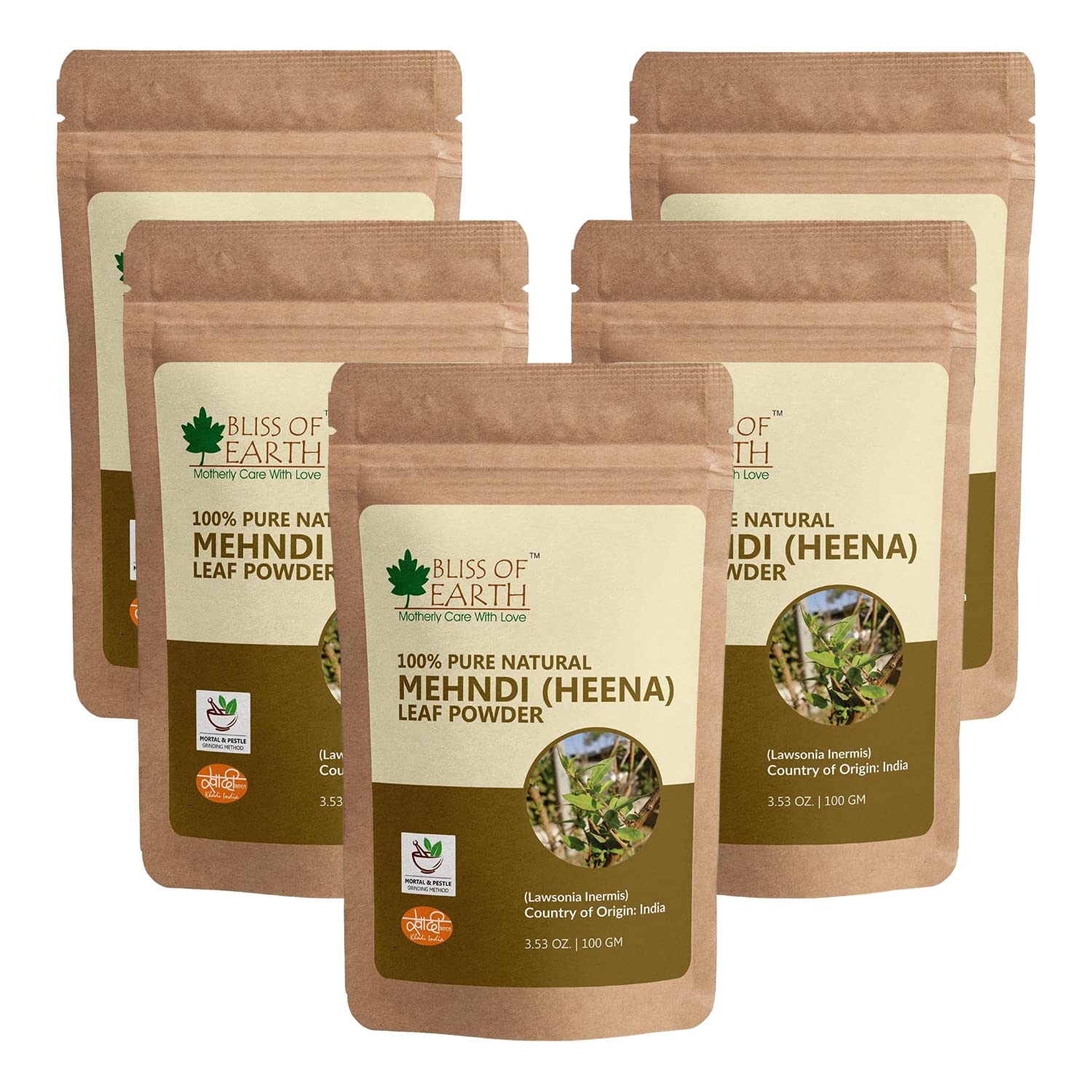 Bliss of Earth 100% Pure & Natural Henna Powder | 5x100GM | Natural Hair Color |Shiny Hair | Mehandi Powder 500gm