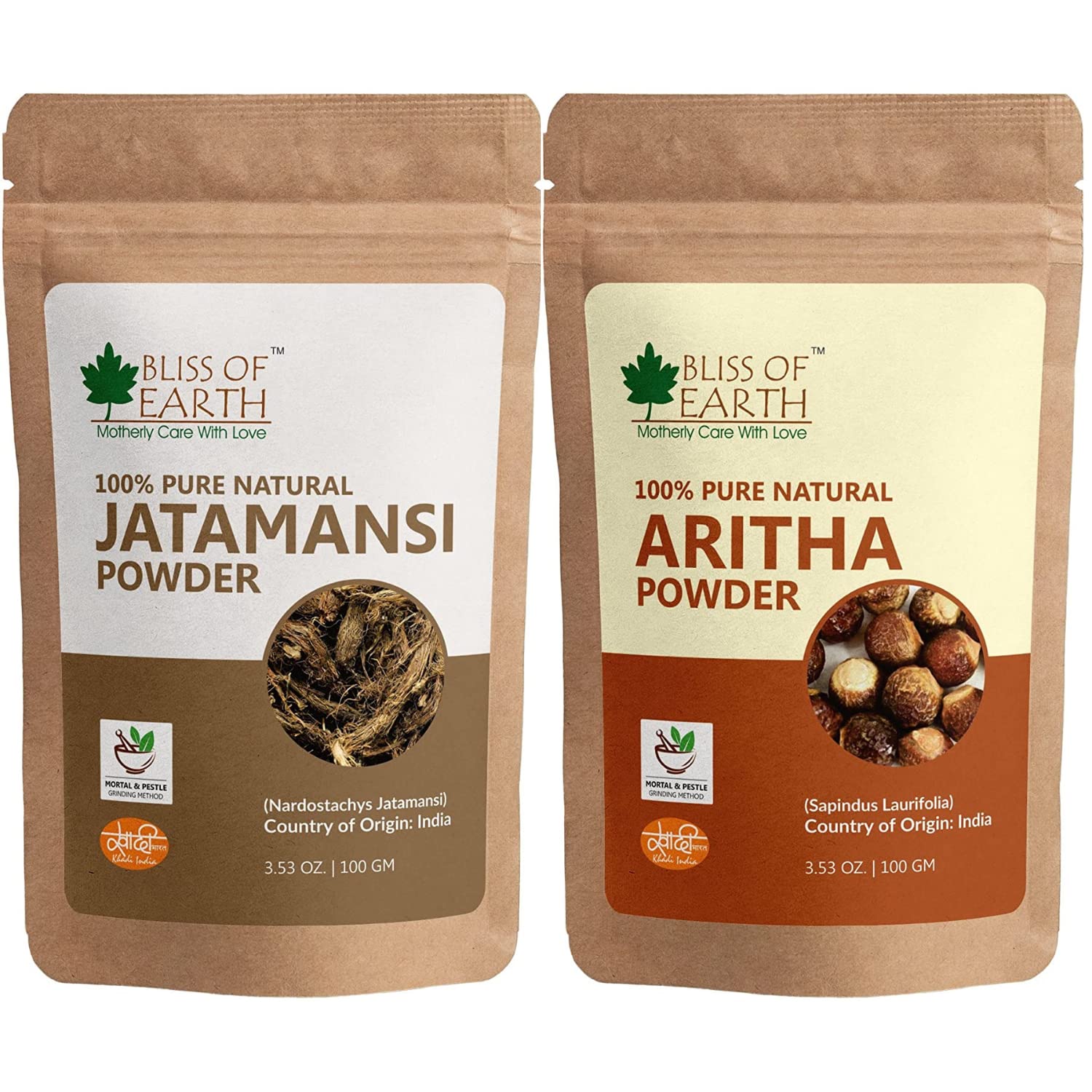 The ancient Ayurvedic herb that will raise your hair game by leaps and bounds Jatamansi deserves all the accolades that it has been receiving since times immemorial for its sterling hair care virtues. A calming herb by nature Jatamansi is regarded a rejuvenating tonic for your mind as well as mane.If you desire silky smooth thick and stunning long locks your quest for the âit' ingredient in your DIY hair potions should land you at Jatamansi. From battling dandruff to arresting excessive hair fall balding thinning flaky scalp to accelerating the rate of hair growth Jatamansi does it all. Check check and double check!At Bliss of Earth we are confident of providing nothing short of the most authentic Jatamansi powder to you for all your DIY endeavours.A herb relied upon since times immemorial Reetha needs no elaboration when it comes topampering your crowning glory. Prescribed in ancient Ayurvedic texts use of Reetha (soap nuts)helps arrest excess (and definitely unwarranted) hair fall.Use is cushy and a no-brainer. Mix with your favourite ingredient water or yogurt. Get ingeniousand add more herbs to your hair potion and there you go your anti-hair loss and scalp-soothinghair pack is ready.From showing the door to dandruff scalp itchiness flakiness lice etc. to even imparting a stunninglustre to your hair while thickening hair to no end Bliss of Earth's Reetha powder is to be takensolemnly if you want your hair game to be strong⦠and also your locks! Ours is organically grownhand-picked diligently and ground finely. It will make it your good books instantly you bet.
