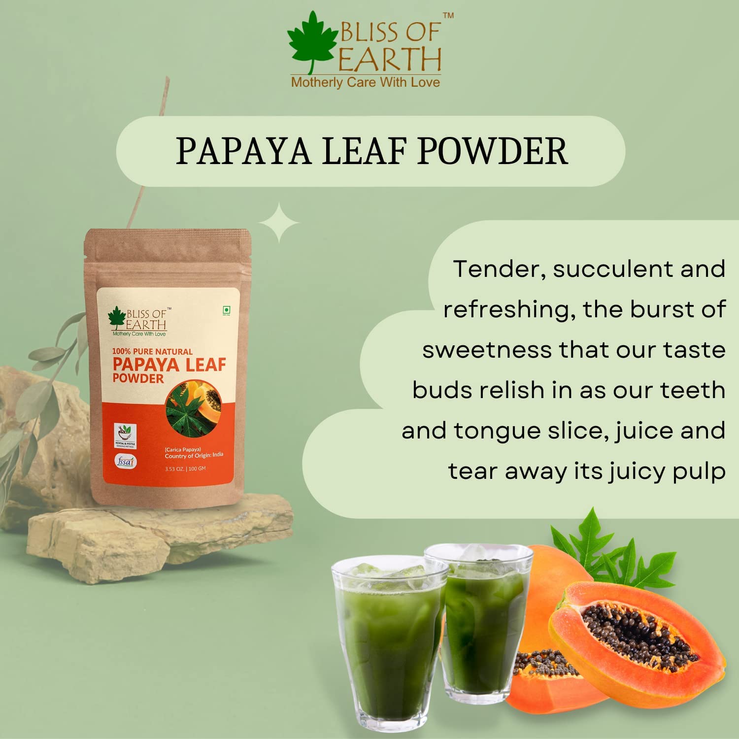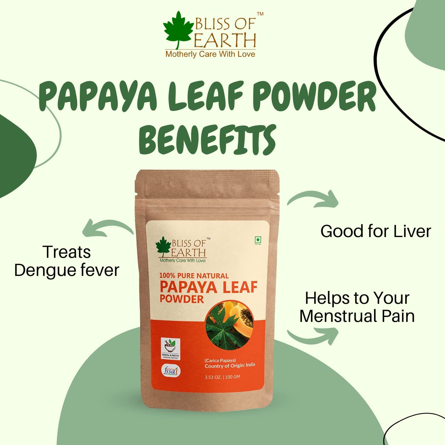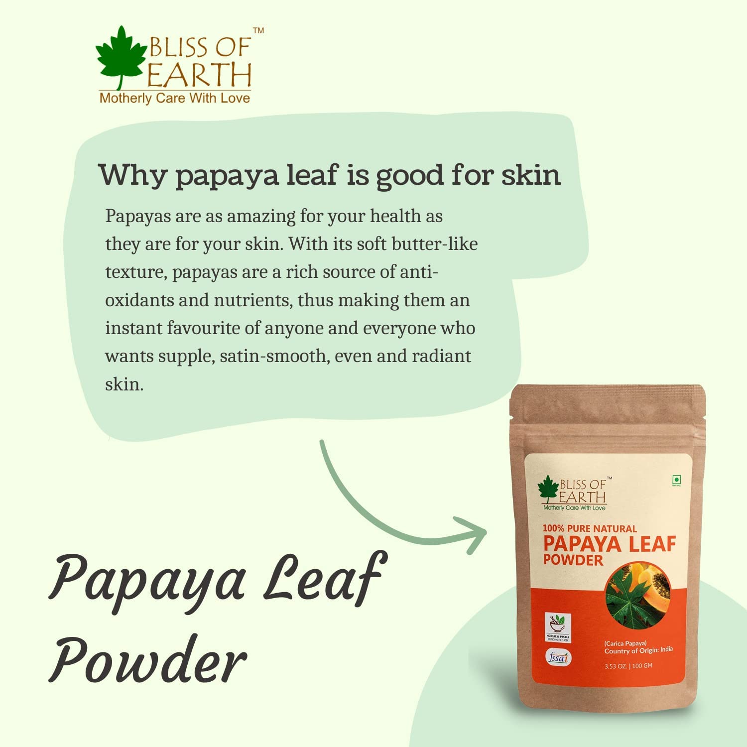 Bliss of Earth Papaya powder that is as salubrious for your skin as a smoothie made out of it is for your overall health! Indulge in the goodness of this wondrous natural elixir & (Neem Powder) If Neem& skin benefits are shrouded in obscurity for you here& quickle for you Neem will revive your skin like never before. Pigmentation acne pimples blackheads boils breakouts⦠name any skin problem that routinely annoys those with acne-prone oily skin and Neem thanks to its anti-bacterial anti-fungal and anti-microbial virtues will arrive on the scene and tackle all your skin foes single-handedly.