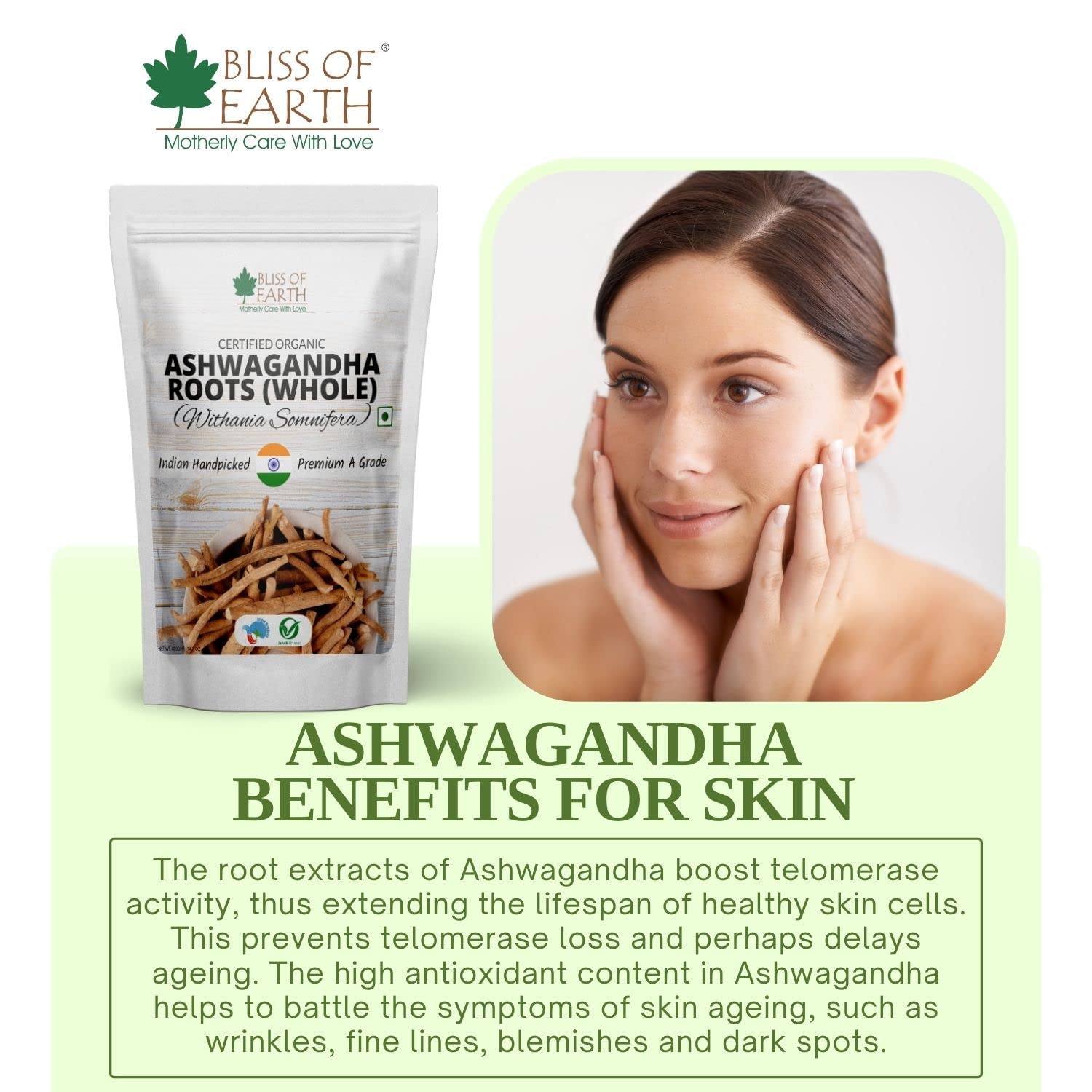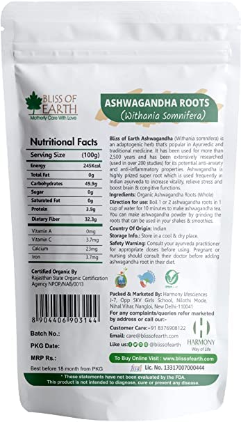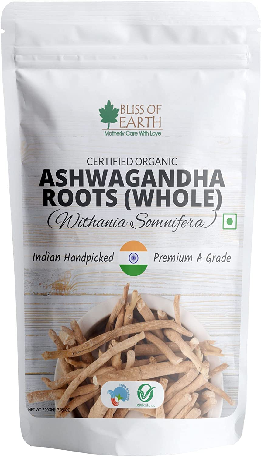 Bliss of Earth 200GM Certified Organic Ashwagandha Roots Whole Withania Somnifera Premium Grade Help Boost Immunity Stress Relief