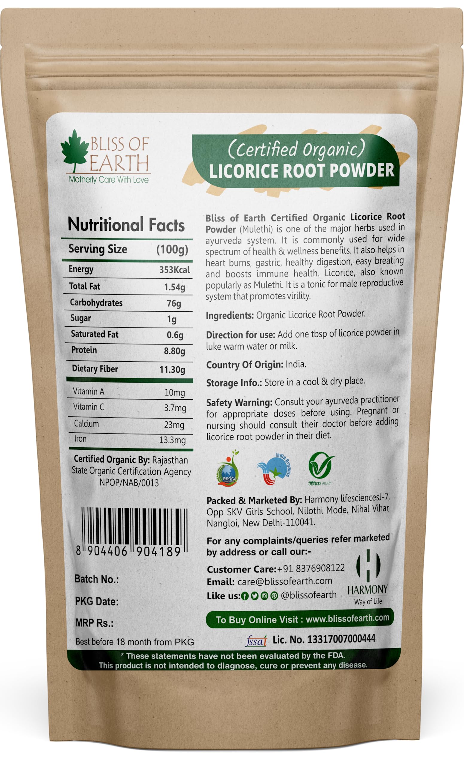 Bliss of Earth 5x453 GM Organic Licorice Root Powder For Eating Mulethi Powder Organic For Skin Whitening Hair & face (Pack Of 5)