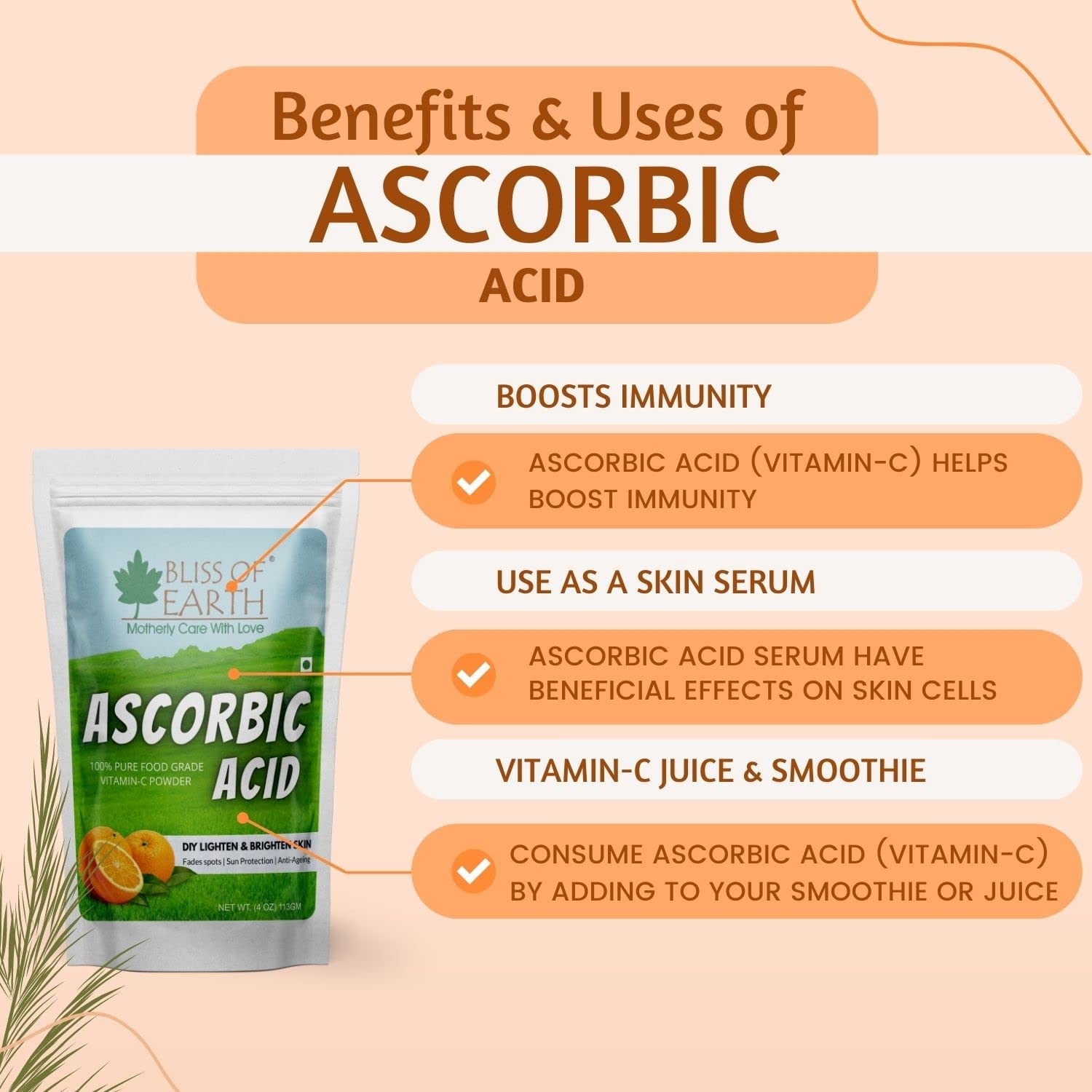 Boosts Immune Health Bliss of Earth ascorbic acid powder or Vitamin C powder is the perfect way to help boost your immune health. It is a powerful antioxidant that helps protect your body from free radicals. It's a great way to keep your immune system str