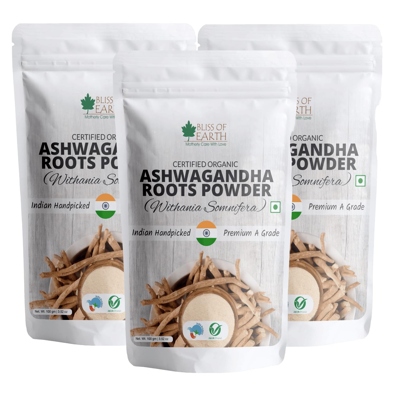 Bliss of Earth Ashwagandha Powder 100gm Organic Withania Somnifera Premium Grade Help Boost Immunity Pack of 3