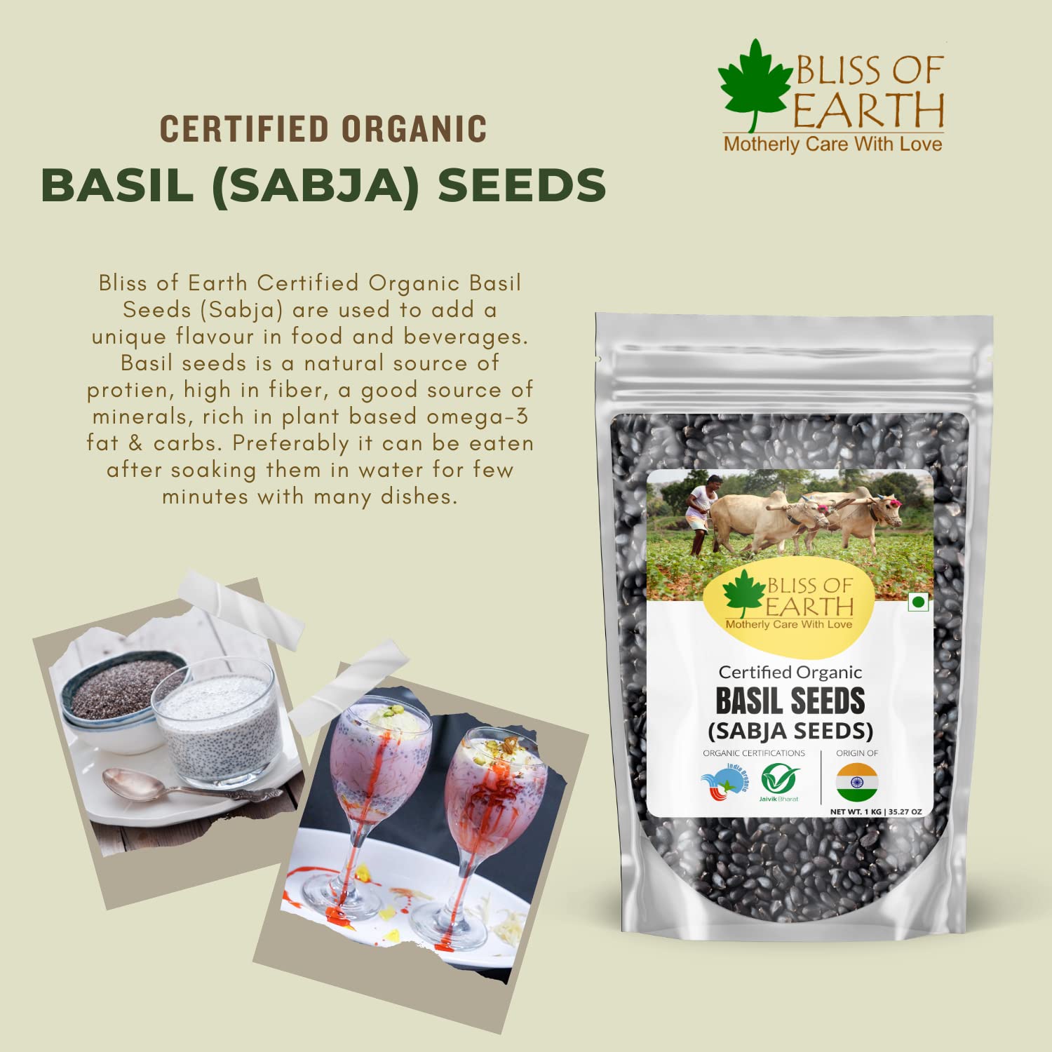 Bliss of Earth Certifed Organic Basil Seeds (Sabja) are used to add a unique flavour in food and beverages. basil seeds is a natural source of protien high in fiber a good source of minerals rich in plant base omega-3 fat & carbs. Preferably it can be eaten after soaking them in water for few minutes with many dishes.