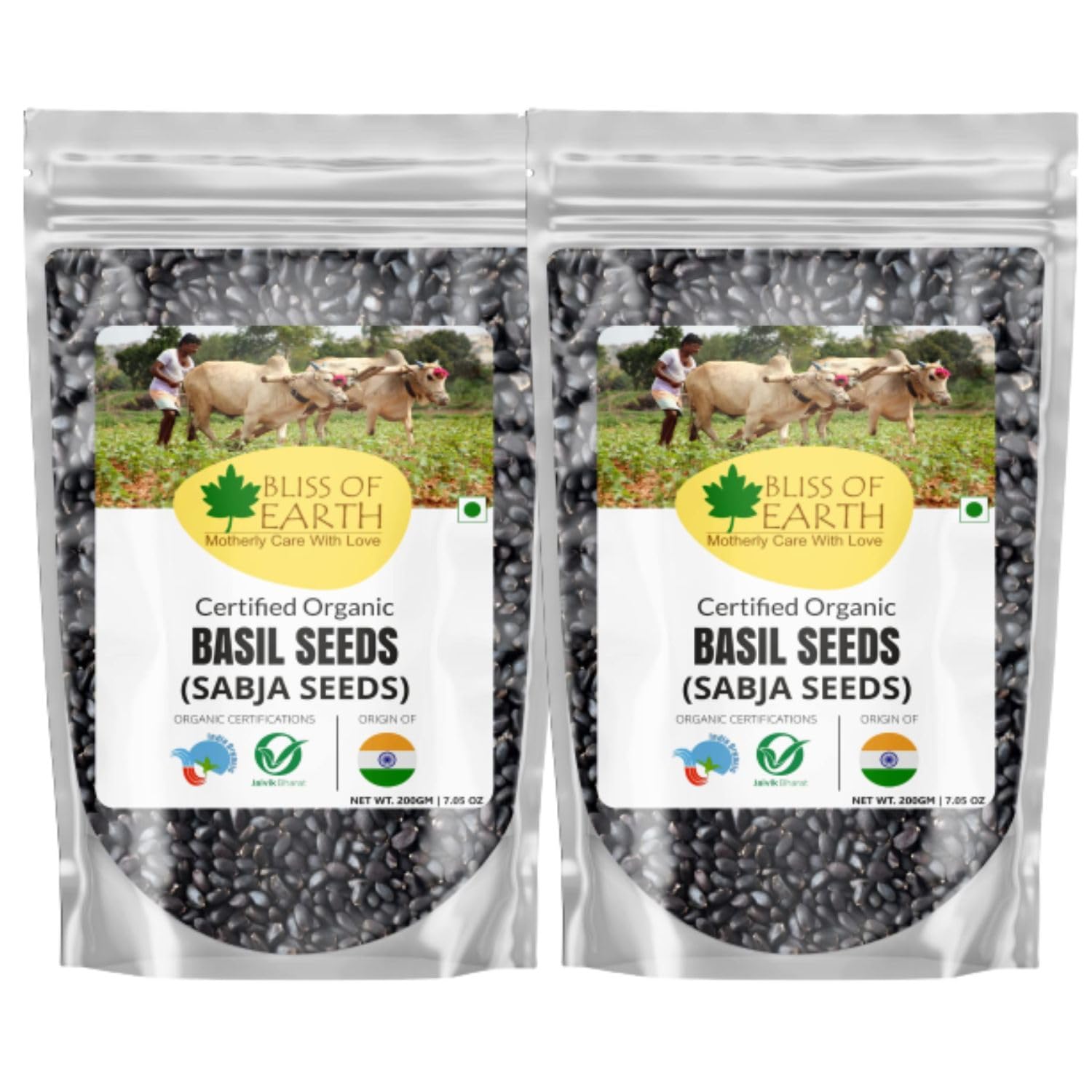 Bliss of Earth Certifed Organic Basil Seeds (Sabja) are used to add a unique flavour in food and beverages. basil seeds is a natural source of protien high in fiber a good source of minerals rich in plant base omega-3 fat & carbs. Preferably it can be eaten after soaking them in water for few minutes with many dishes.