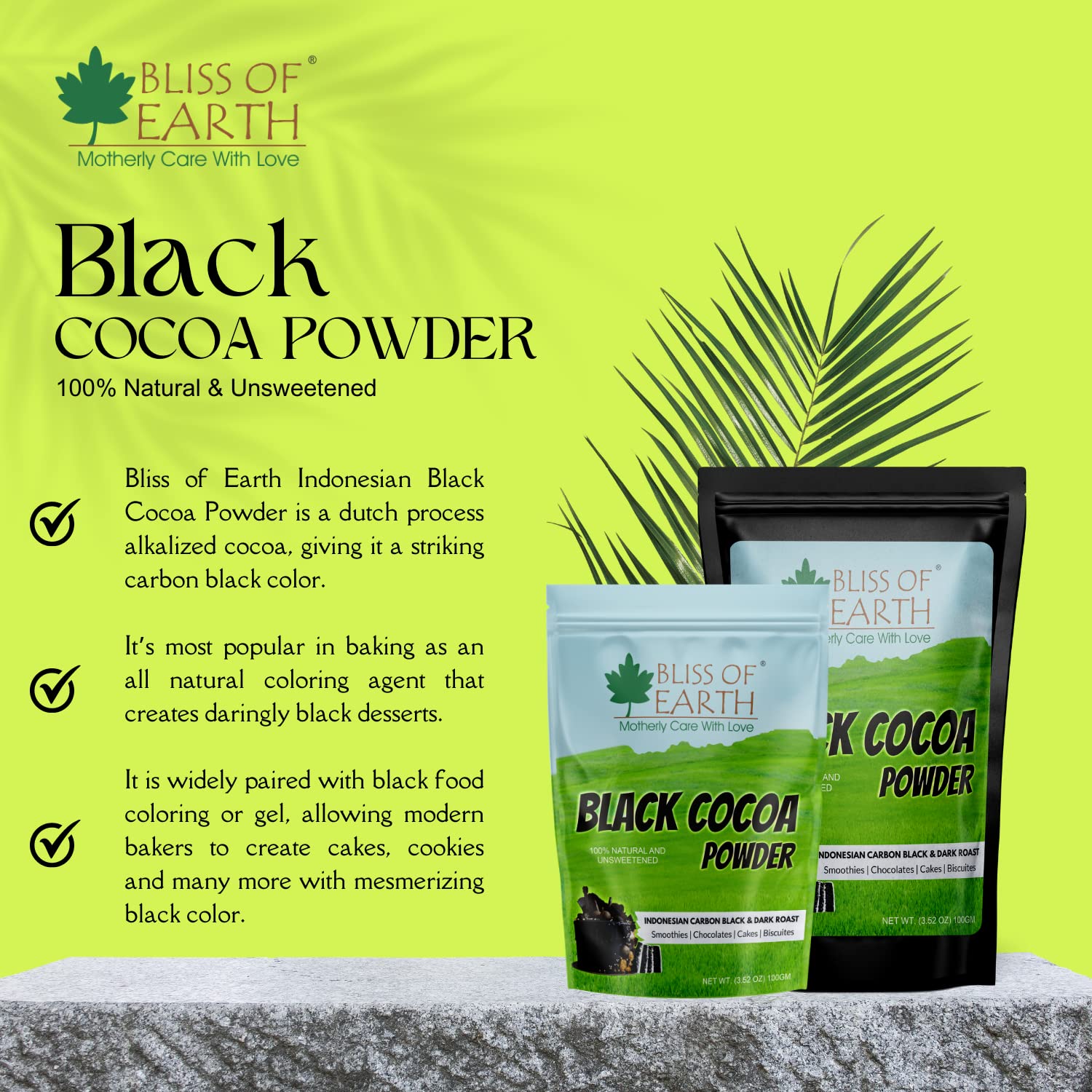 Bliss of Earth Carbon Black Cocoa Powder Indonesian Natural and Unsweetened Dark Roast Perfect for Cooking & Baking Cakes Biscuits Oreo Chocolates Smoothies 200g