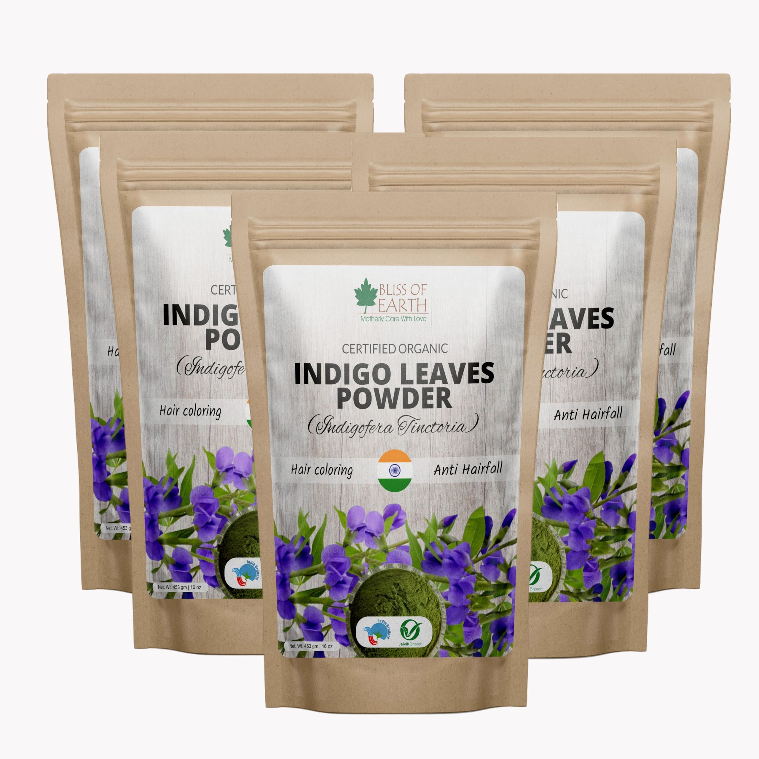 Bliss of Earth Indigo powder is certified organic and is made from organic indigo leaves. Indigo powder is used to get deep black or dark brown color. In case of gray white or blonde hair you have to follow the two steps process. First step is to apply Bliss of Earth Organic Henna powder. Second apply the Indigo powder after washing out the Henna powder. For normal hair mix Henna & Indigo powder to get shiny black color. Direction to use: 1. Mix the indigo powder with warm water in a glass bowl and make a thick spreadable paste. 2. Cover the paste with a plastic wrap for 15-20 minutes. 3. Apply Bliss of Earth Organic coconut oil in open areas like ears neck and hair line to prevent the coloring. 4. Apply the paste on your hair with a brush. 5. Once the hair are fully covered with the Indigo paste wear a shower cap and wait for 2-3 hours. Wait for 5-6 hours if you have mixed both Henna and Indigo powders. 7. Rinse your hair with runny water wihout using shampoo. 8. Let your hair dry. Cautions: For external use only. Do not apply on skin or near eyes. Indigo powder is best used in combination with Henna or after coloring your hair with Henna.