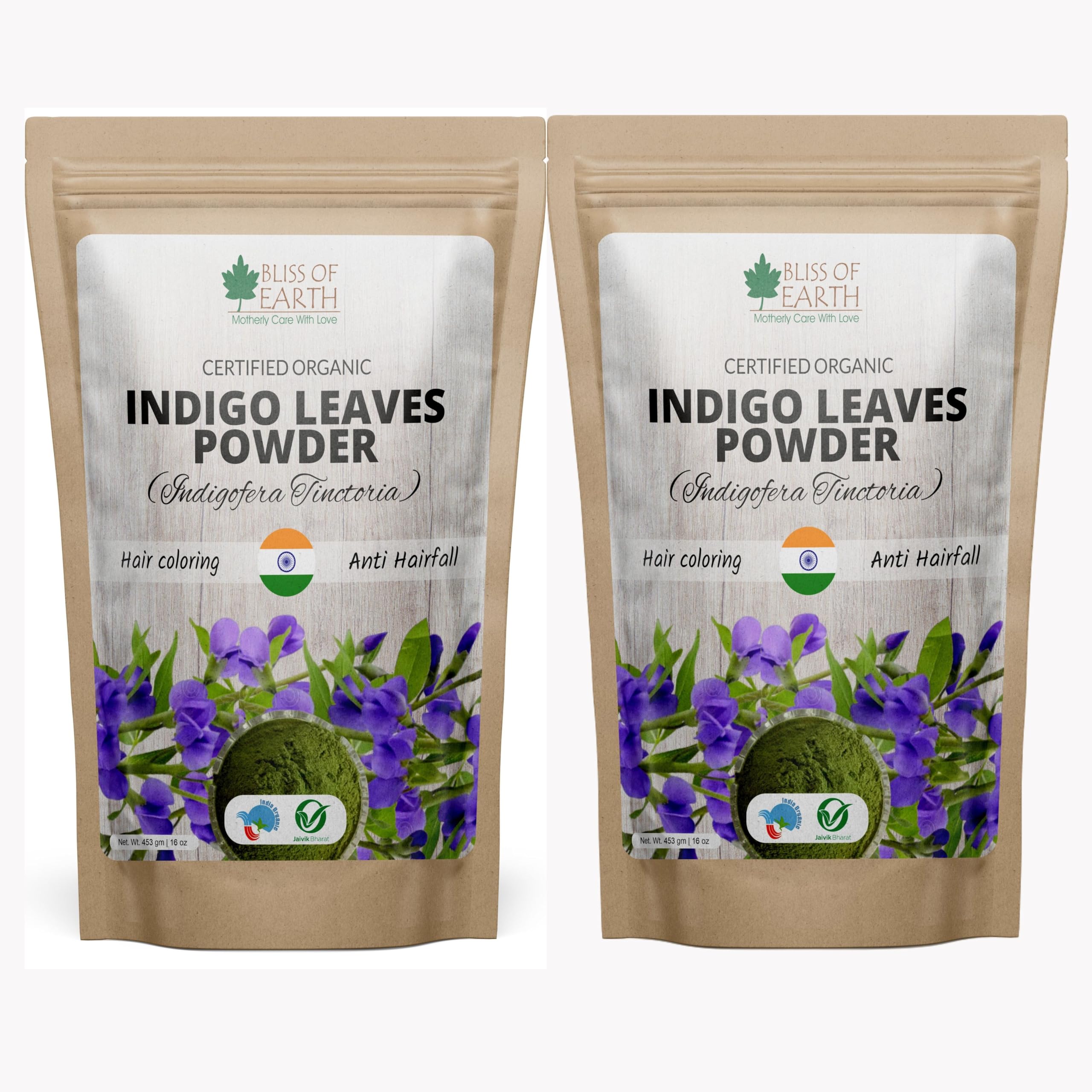 Bliss of Earth Indigo Powder Organic Natural For Hair Black Organic Hair Dye Pack Of 2x453GM