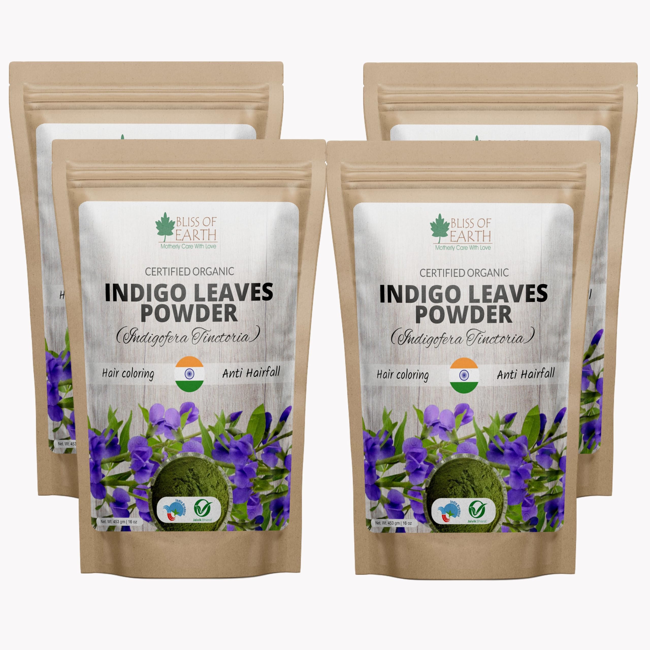 Bliss of Earth Indigo Powder Organic Natural For Hair Black Organic Hair Dye Pack Of 4x453GM
