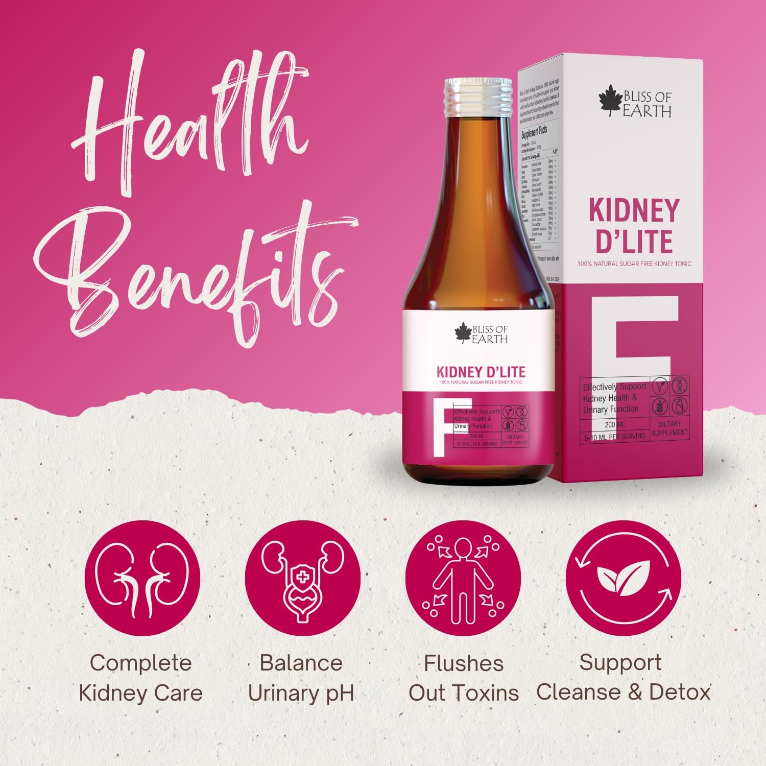 Bliss of Earth Kidney Detox & Cleanse Supplement Natural & Sugar Free Kidney Syrup 200ml