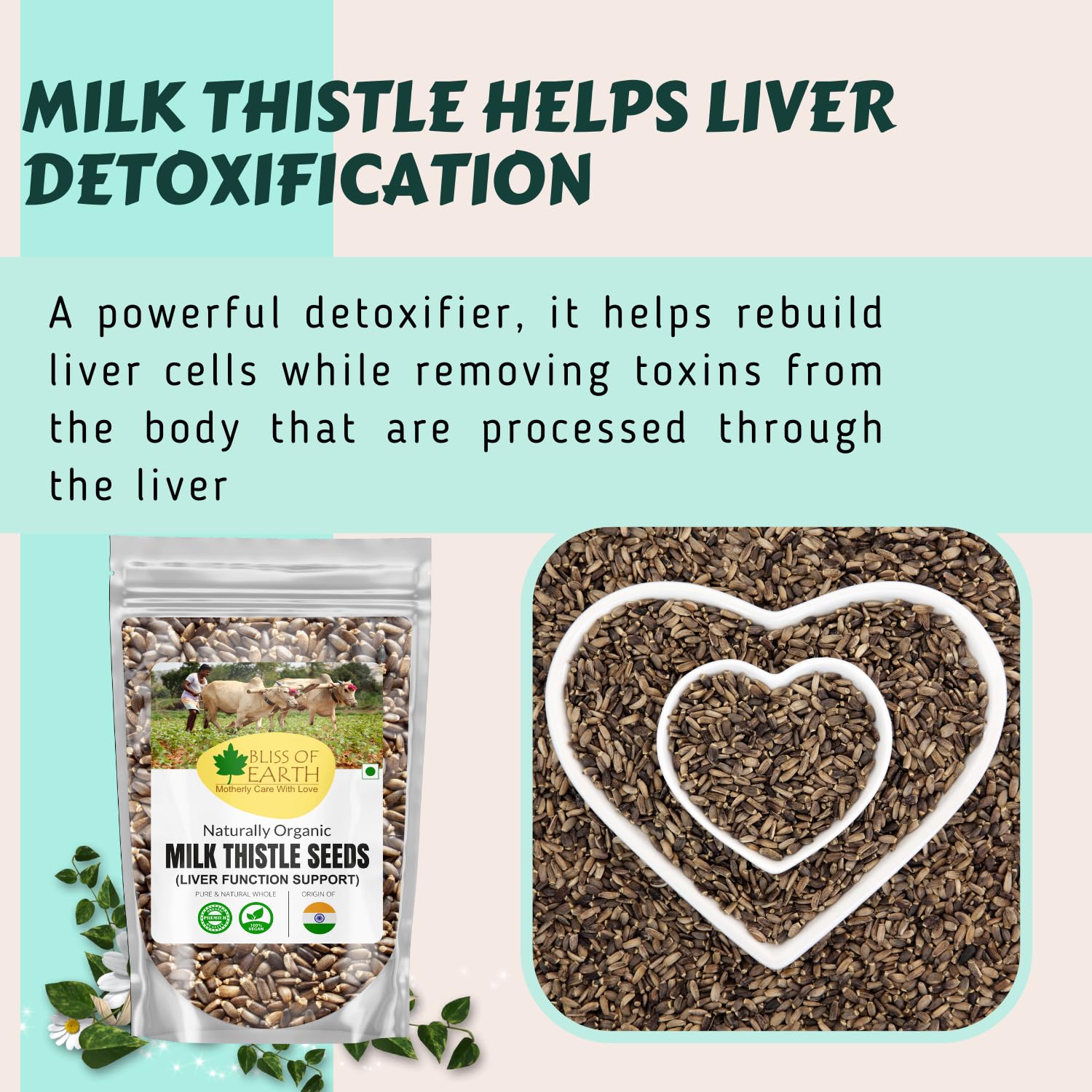 Bliss of Earth Milk thistle seeds are used as herbal remedy derived from the milk thistle plant also known as Silybum marianum. The active ingredients "silymarin" extracted from milk thistle is known to have antioxidant antiviral and anti-inflammatory properties.