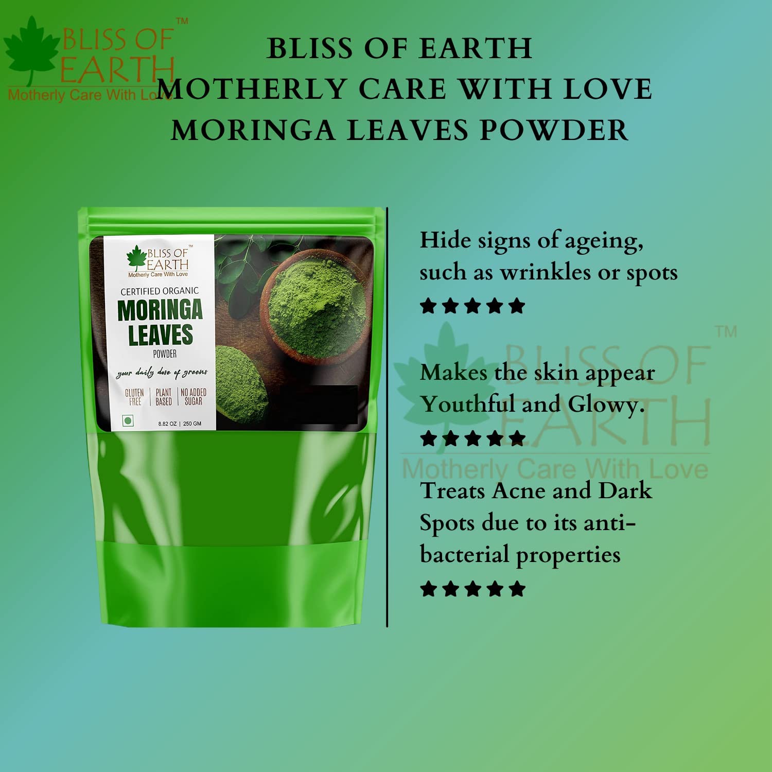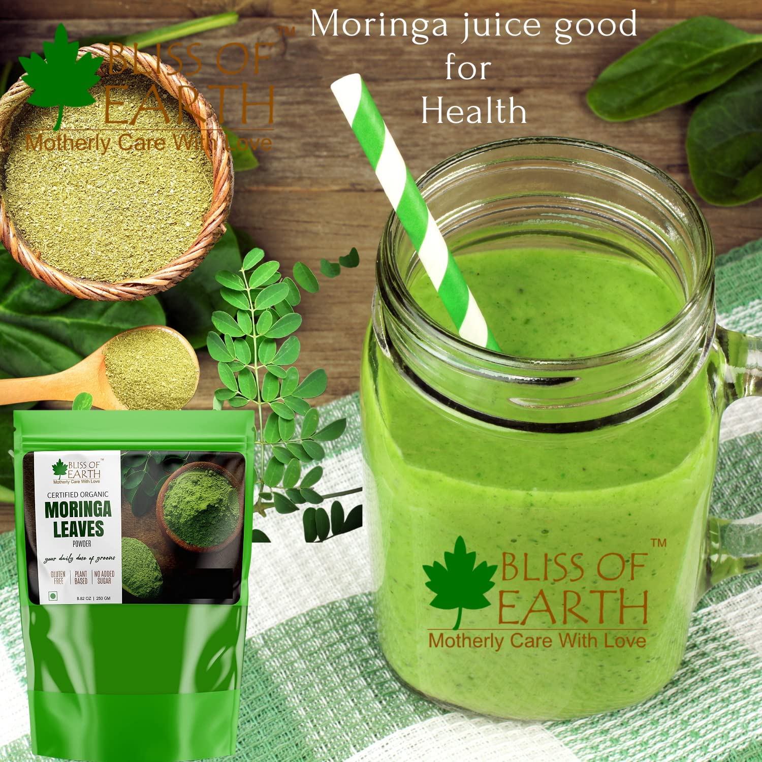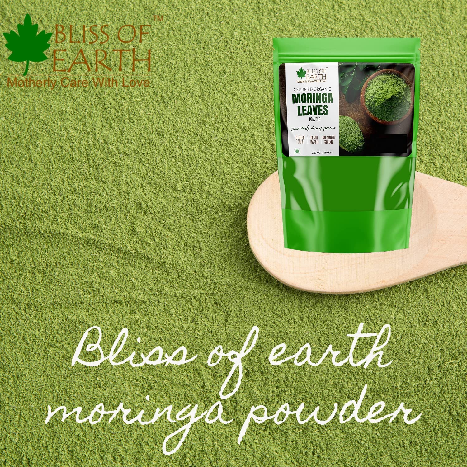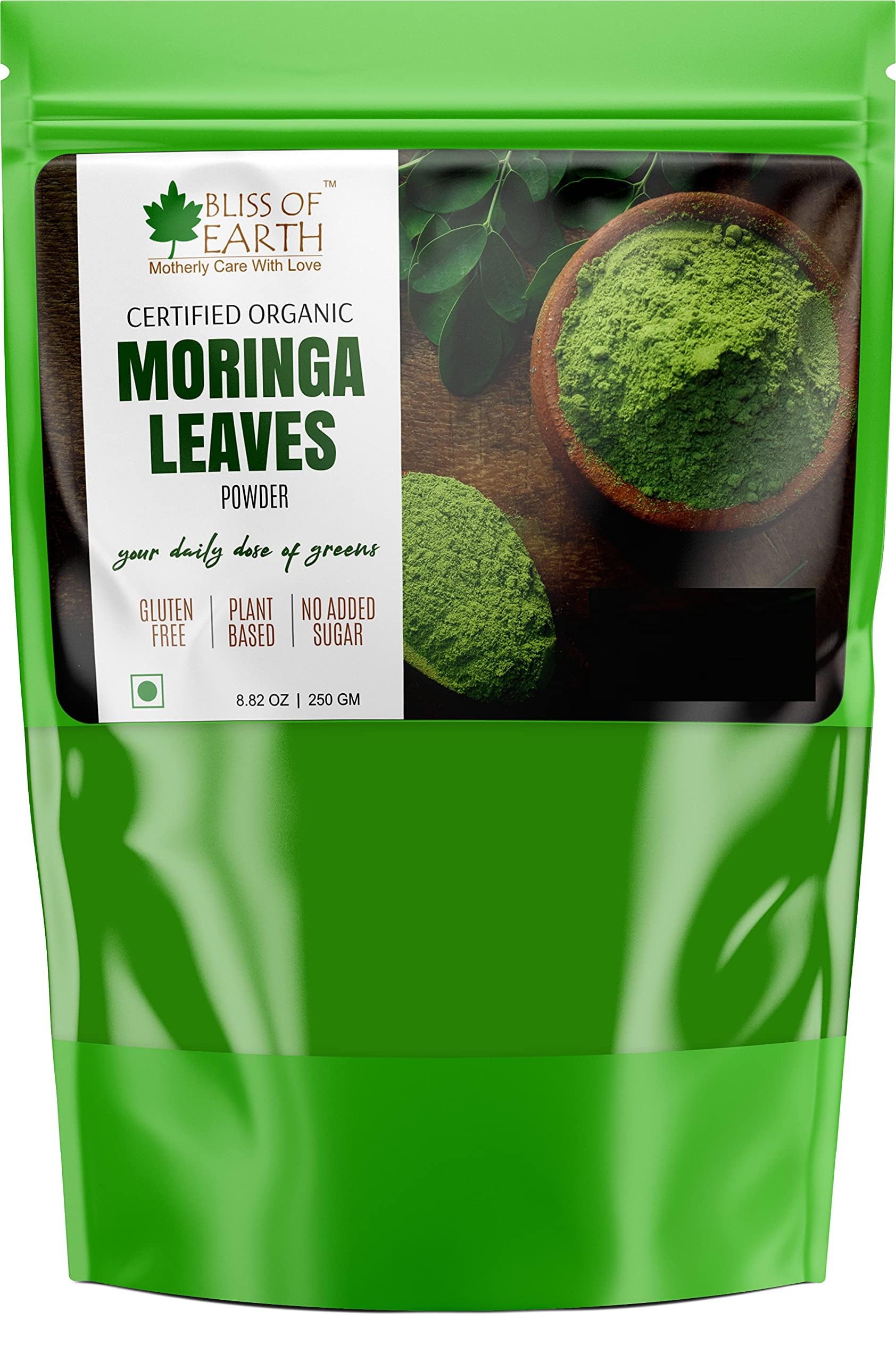 This bag of sustainably grown powder of organic moringa leaves is an excellent source of iron calcium and fiber moringa is one of the most nutrient-dense plant of the Earth. Popularly known as "tree of life" many find it beneficial for detoxification and to manage post-workout inflammation. Moringa contains 90+ nutrients and amino acids which are naturally occurring making them bioavailable as they work in unity within human body. Bliss of Earth Organic Moringa is farmed with care in India where leaves are handpicked air dried and gently milled the same day to preserve all the precious nutrients. We also preserve all of the fiber from the leaves which promotes digestion and even supports your overall gut health by acting as a probiotic. Suggested Usage: Mix 1 tbs (3 grams) in a glass of lukewarm water and and drink on empty stomach in the morning once or twice a day between meals. Enjoy mixed in water juices smoothies tea or sprinkled food.
