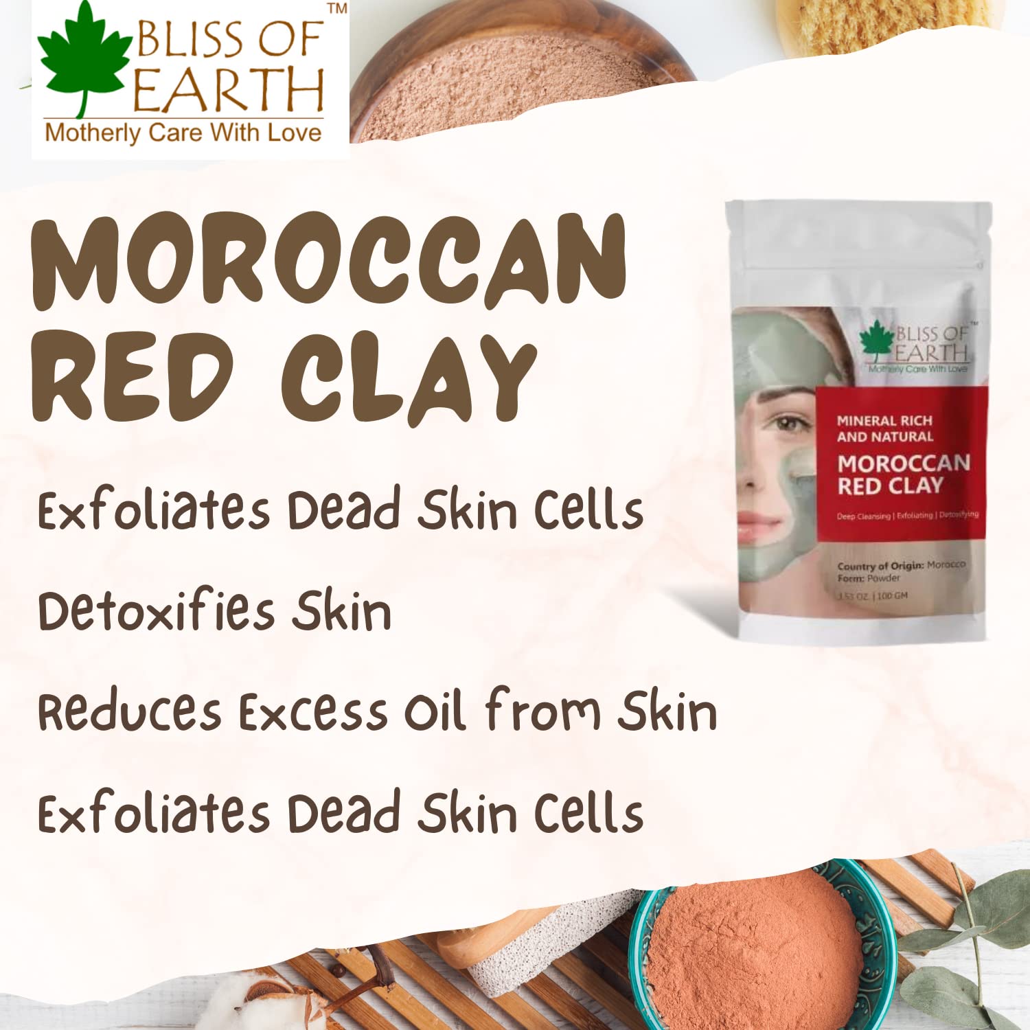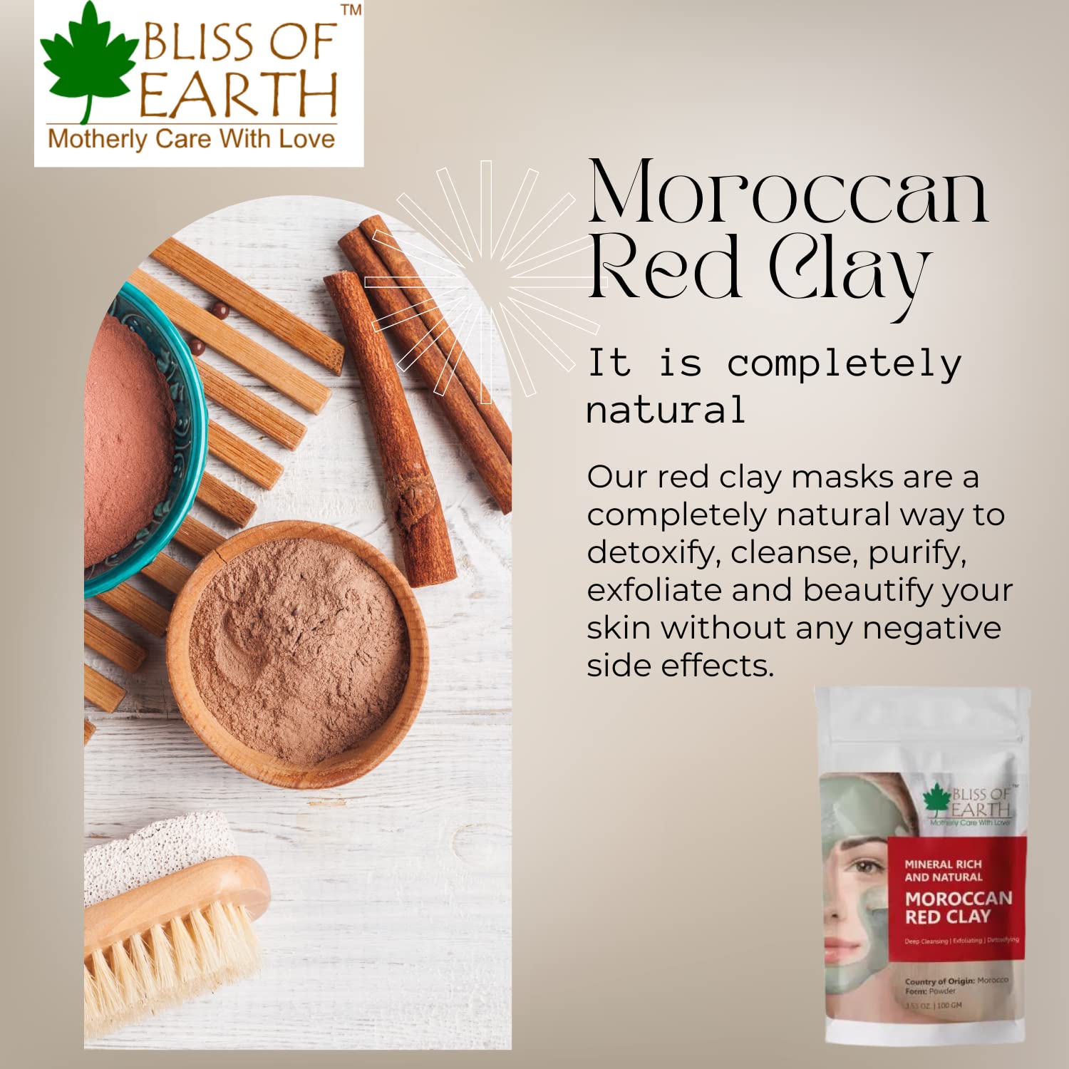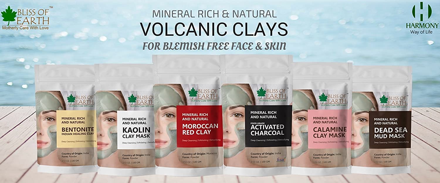 Bliss Of Earth; Moroccan red clay powder Natural Facial Mask & Skin Care Treatment.