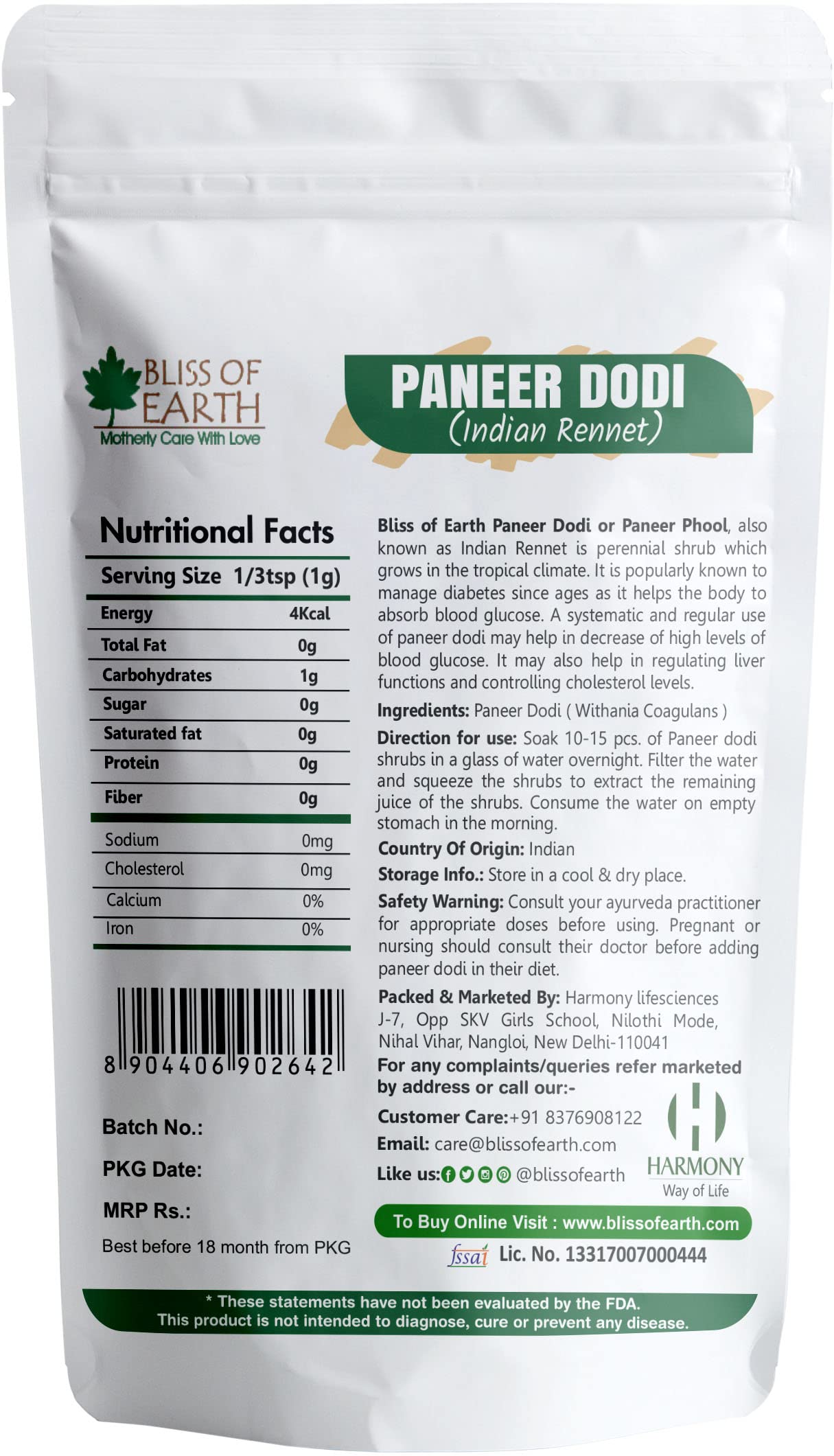 AUTHENTIC INDIAN HERB: Bliss of Earth Paneer Dodi or Paneer Phool also known as Indian Rennet is perennial shrub which grows in the tropical climate. We handpicked the best quality shrubs and pack them in vacuum bag so that you receive them in fresh and u
