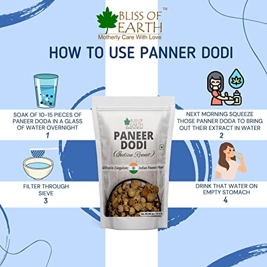 • EASY TO USE: Its very easy to use paneer dodi. Soak 10-15 pcs. of Paneer dodi shrubs in a glass of water overnight. Filter the water and squeeze the shrubs to extract the remaining juice of the shrubs. Consume the water on empty stomach in the morning.