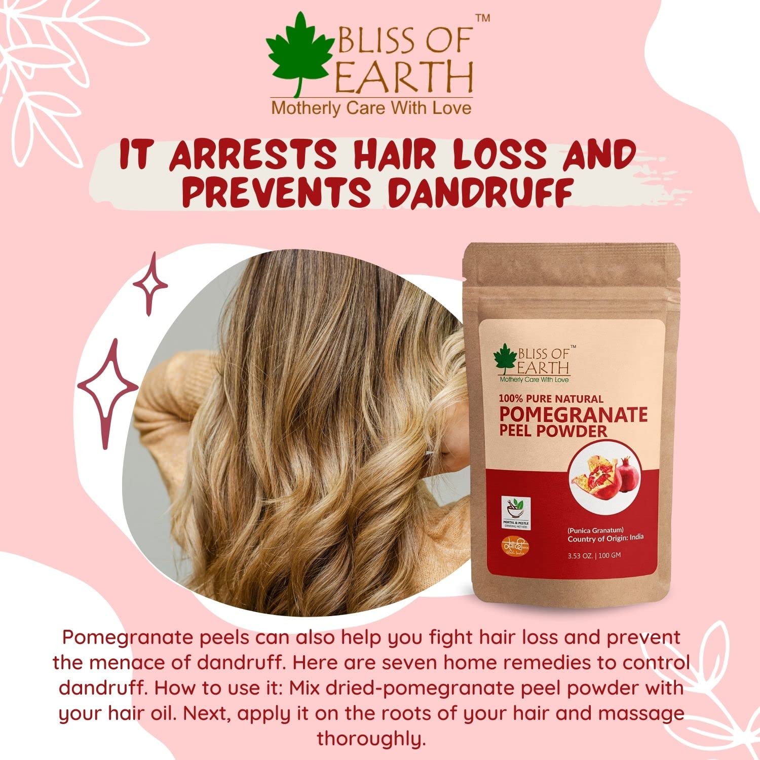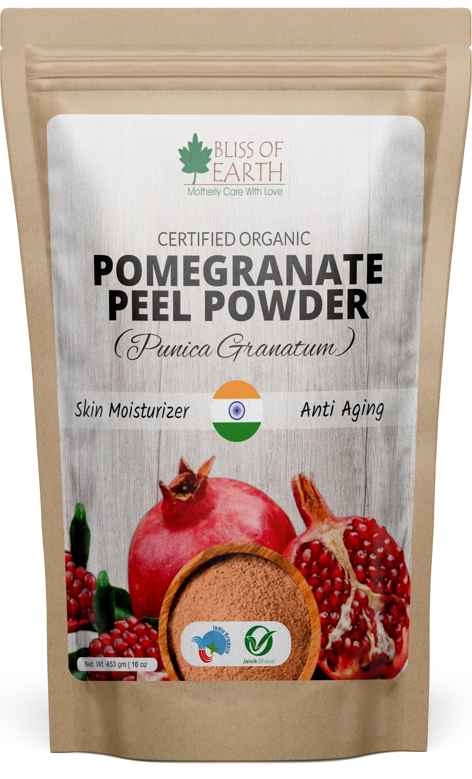 Straight from your plate to your skin potions that's how you need to redefine your relationship with pomegranates! Why? Because this gem of an ingredient kisses life into your dull tired mature uneven and basically haggard skin.What makes one say that?Laden with anti-oxidants that put the kibosh on prematurely ageing skin Vitamins C and K calcium potassium copper and iron pomegranates are your go-to ingredient for keeping your skin smooth radiant younger and plump.Bliss of Earth's pomegranate peel powder is harvested from wild forests hand-pounded and sieved finely to bring to you the bountifulness of this skin super-fruit in its absolute glory.From reducing skin's roughness to promoting the regeneration of epidermis to reducing facial inflammation to reducing the risk of developing wrinkles age spots dark spots and sunburn pomegranate peel powder deserves a space in your beauty closet.