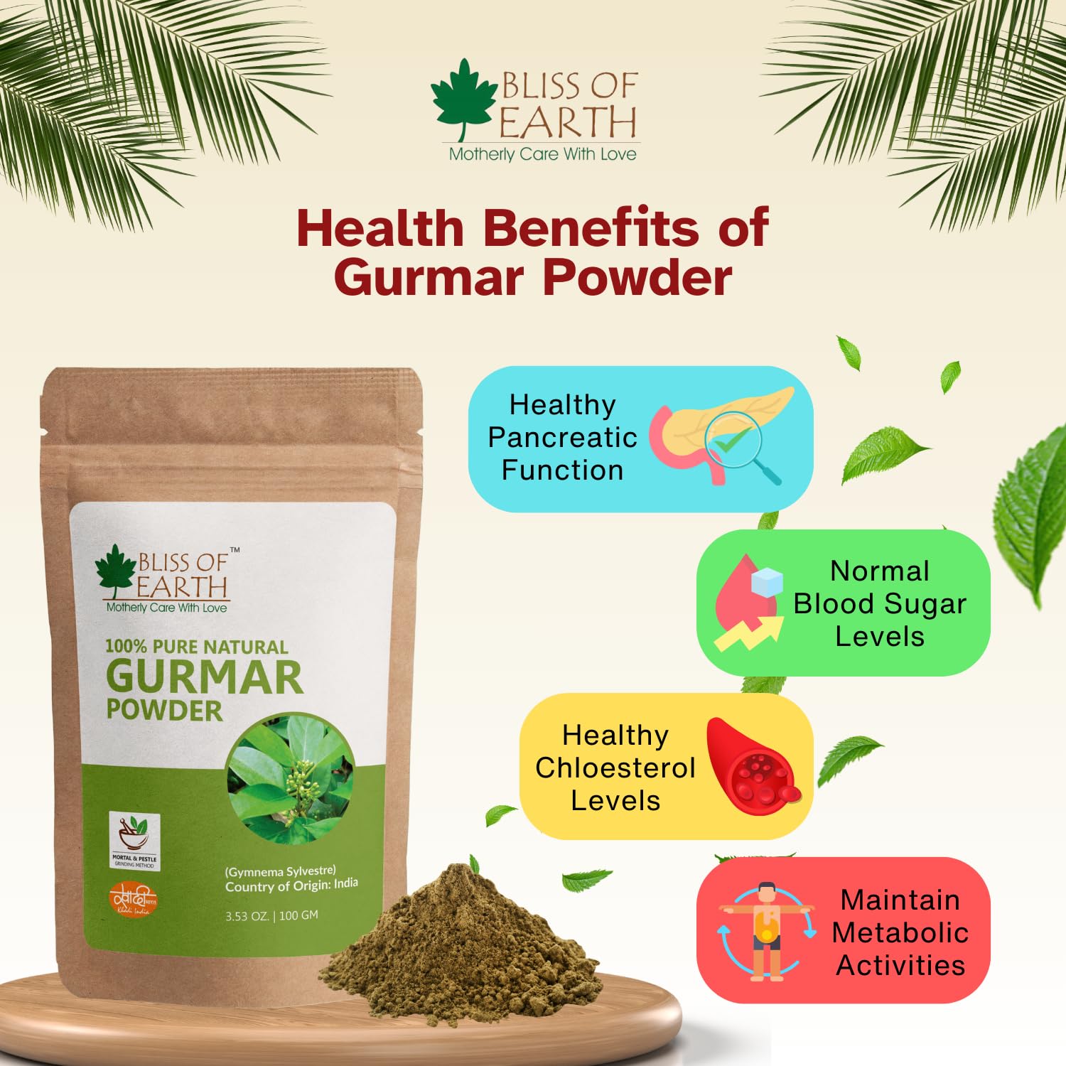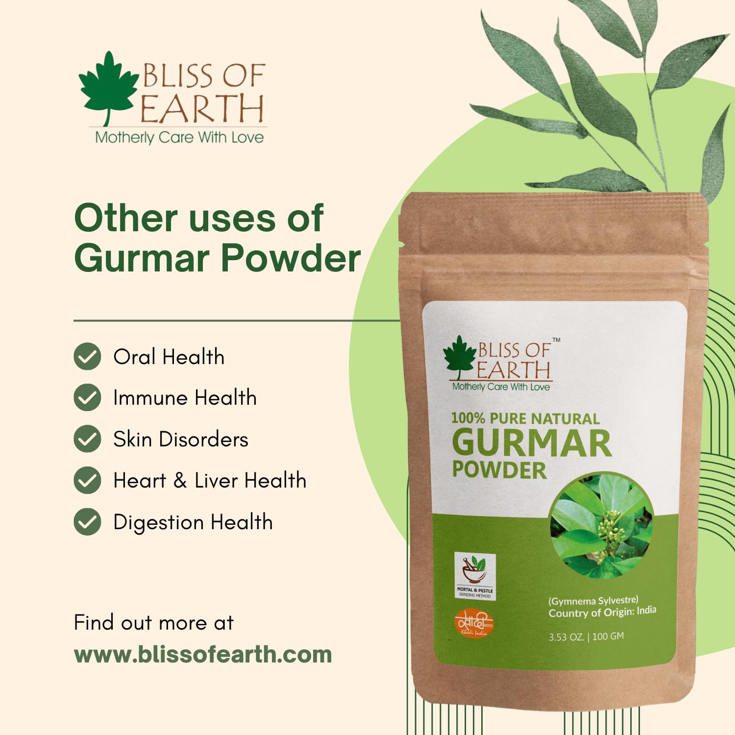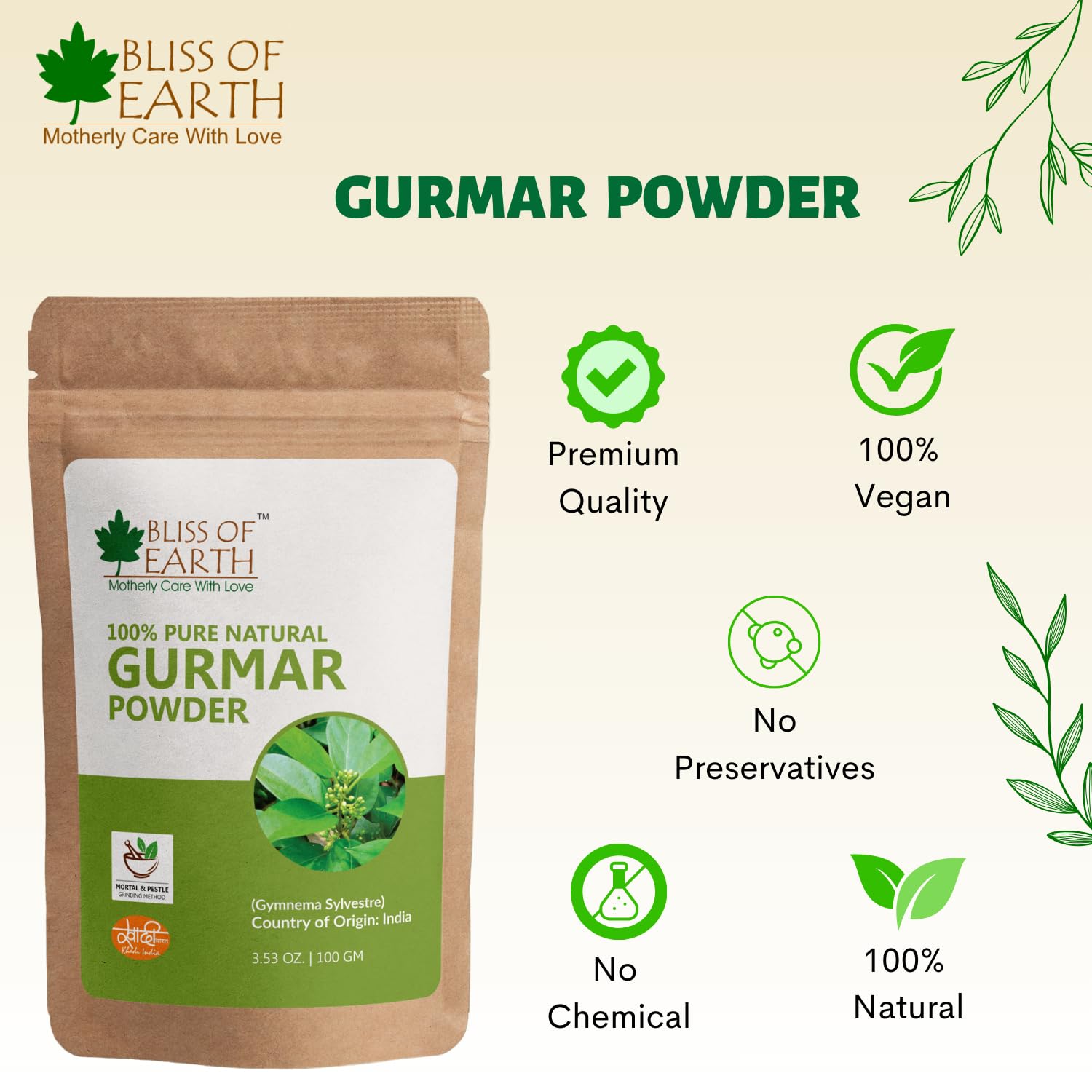 Bliss of Earth Pure Natural Gurmar Powder Gymnema Sylvestre Good for Diabetic & Gut Health 100gm