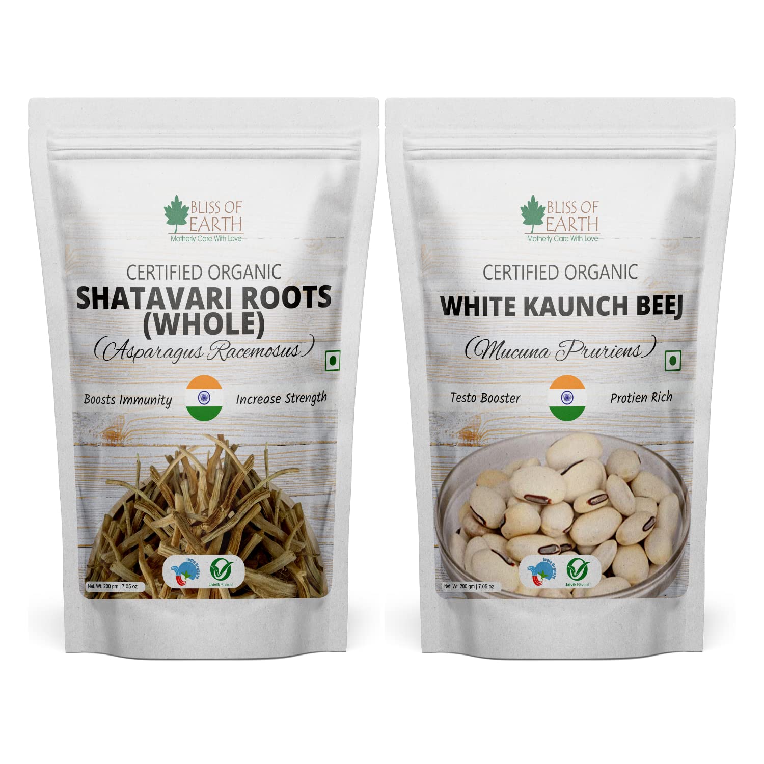 Bliss of Earth Shatavari Root Whole Organic & Kaunch Beej Whole Mucuna Pruriens organic Great for Health & Wellness 200gm Each