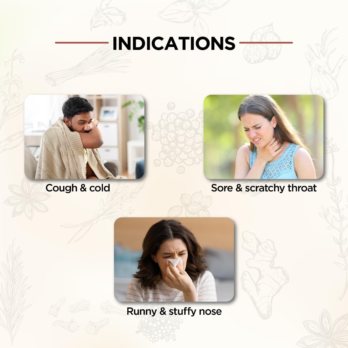 • Relief from Cough Cold & Sore Throat : This product is marketed as a remedy for common respiratory symptoms such as cough cold and sore throat. It implies that the ingredients in the kadha may have properties that help alleviate these discomforts.