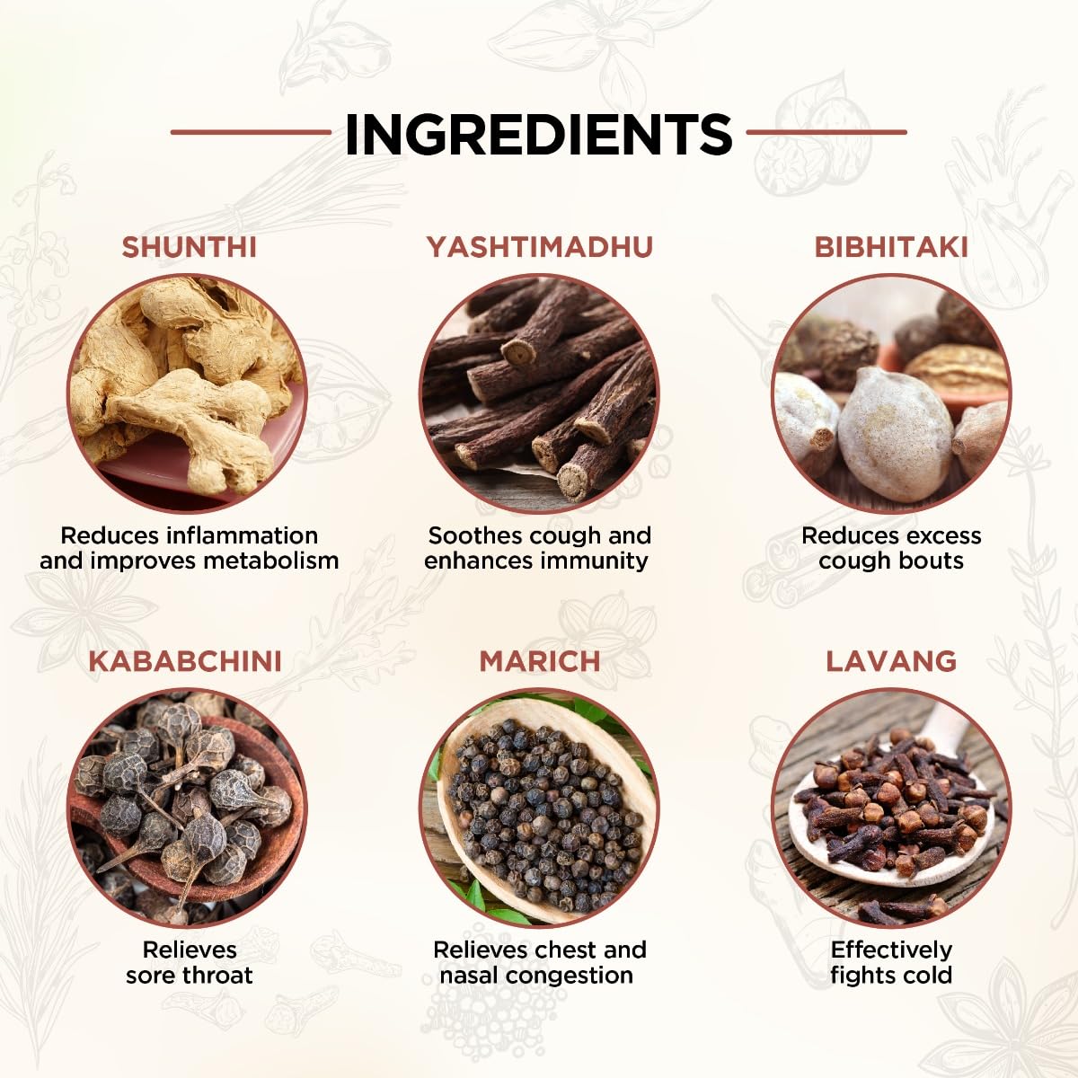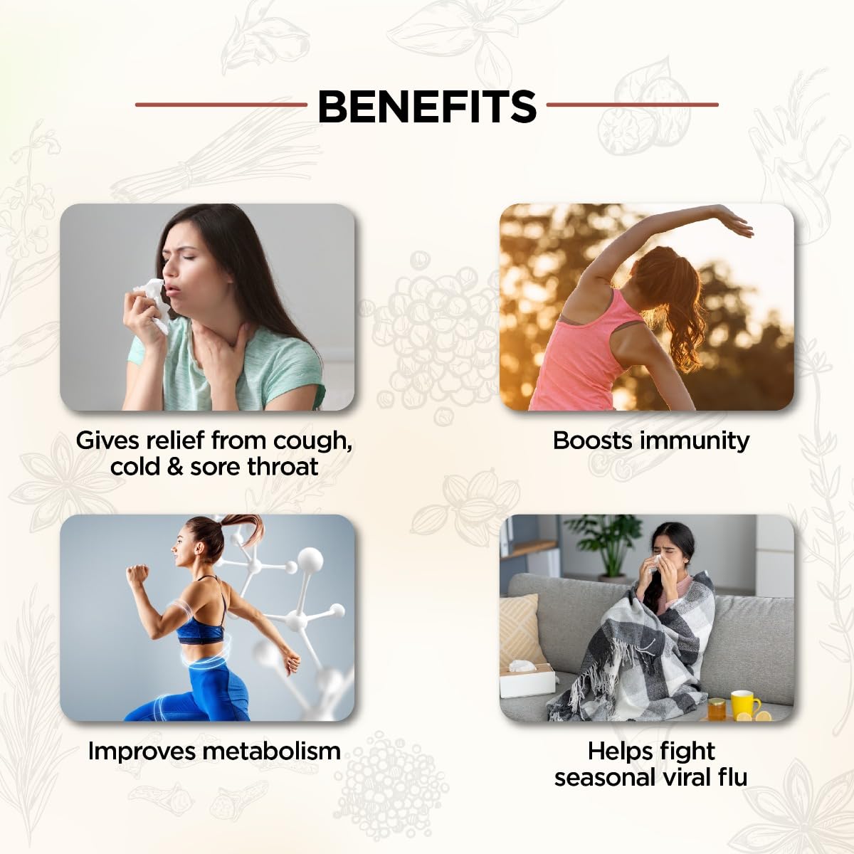 • Pleasant in Taste & Aroma: The palatability of the product is emphasized indicating that it is formulated to have a pleasant taste and aroma. This can make the kadha more enjoyable to consume especially for those with a sensitive palate.