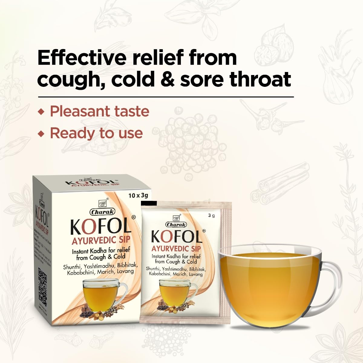 KOFOL Charak Instant Kadha Ayurvedic Sip for quick relief from cough & cold Traditional Ayurveda's Soothing Remedy - each pach contains 3 sip (Pack of 3)