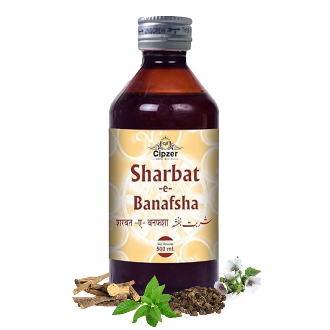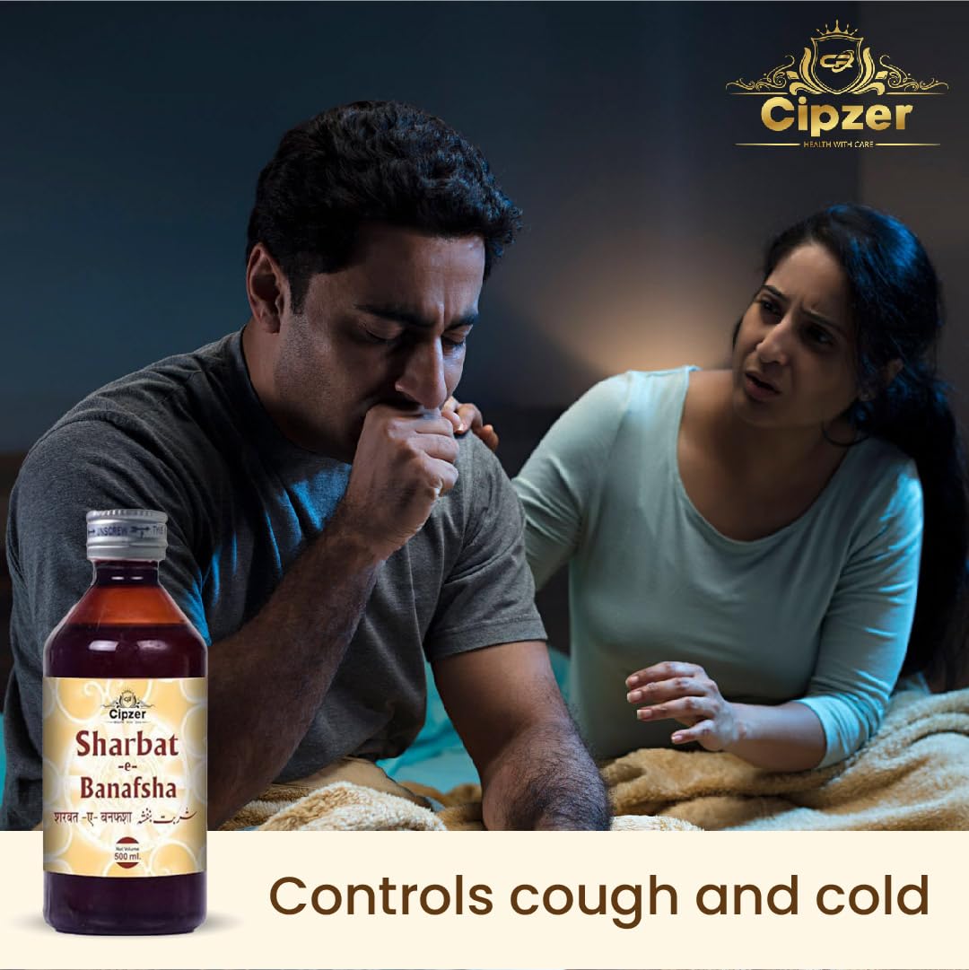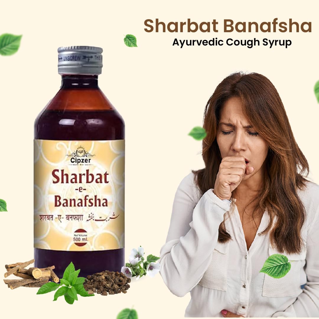 Cipzer Sharbat-e-Banafsha ayurvedic cough syrup instant relief form cough sore throat soothes seasonal cough natural immunity booster and control all types of cough & cold (500ml)