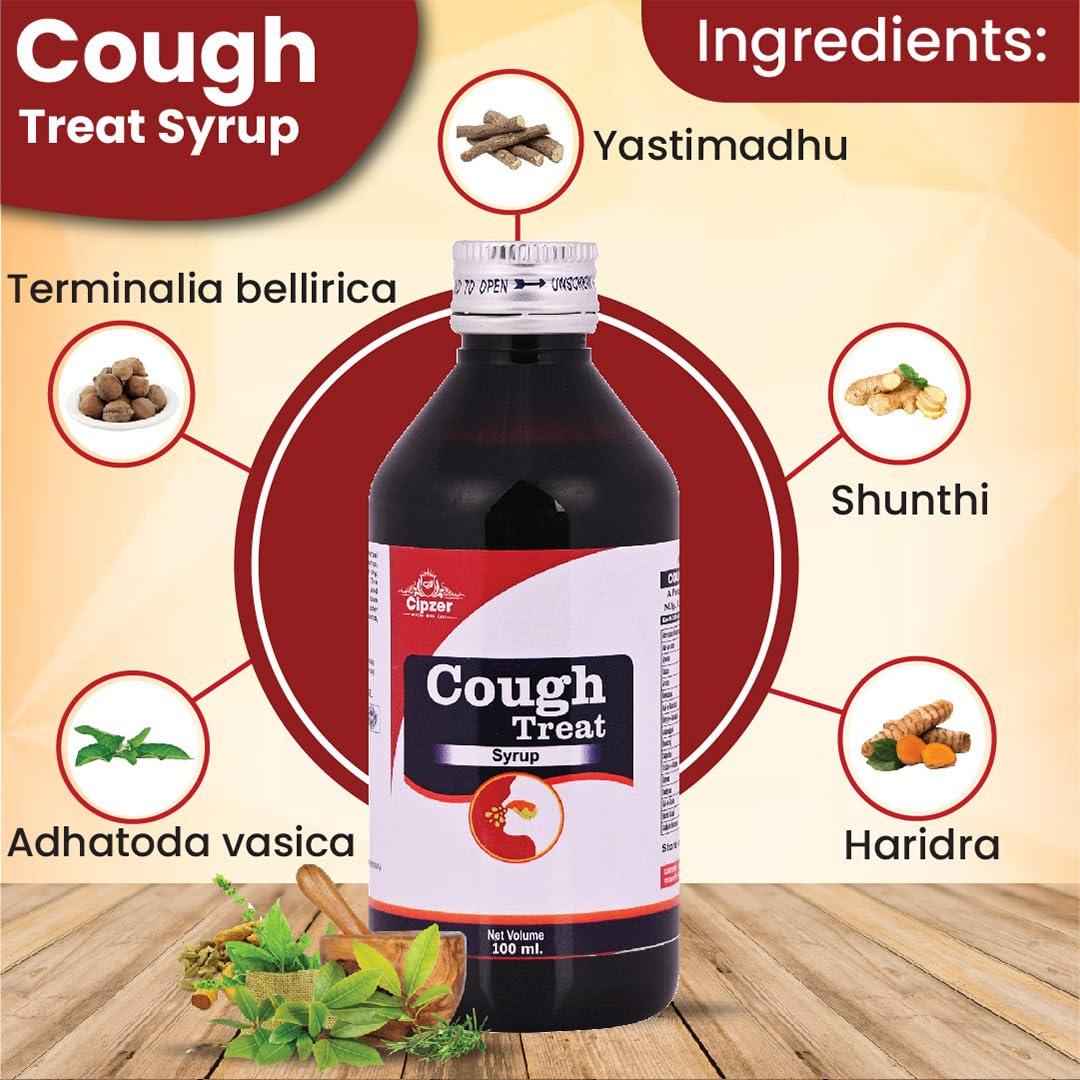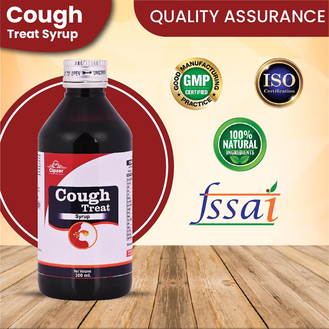 Cipzer Cough Treat Syrup |Relief from cough sore throat |Natural Ingredients | Fast Relief from just 15 mins | Hot Sip Cough Relief Products for Kids Dry Cough Chronic Cough -200ML