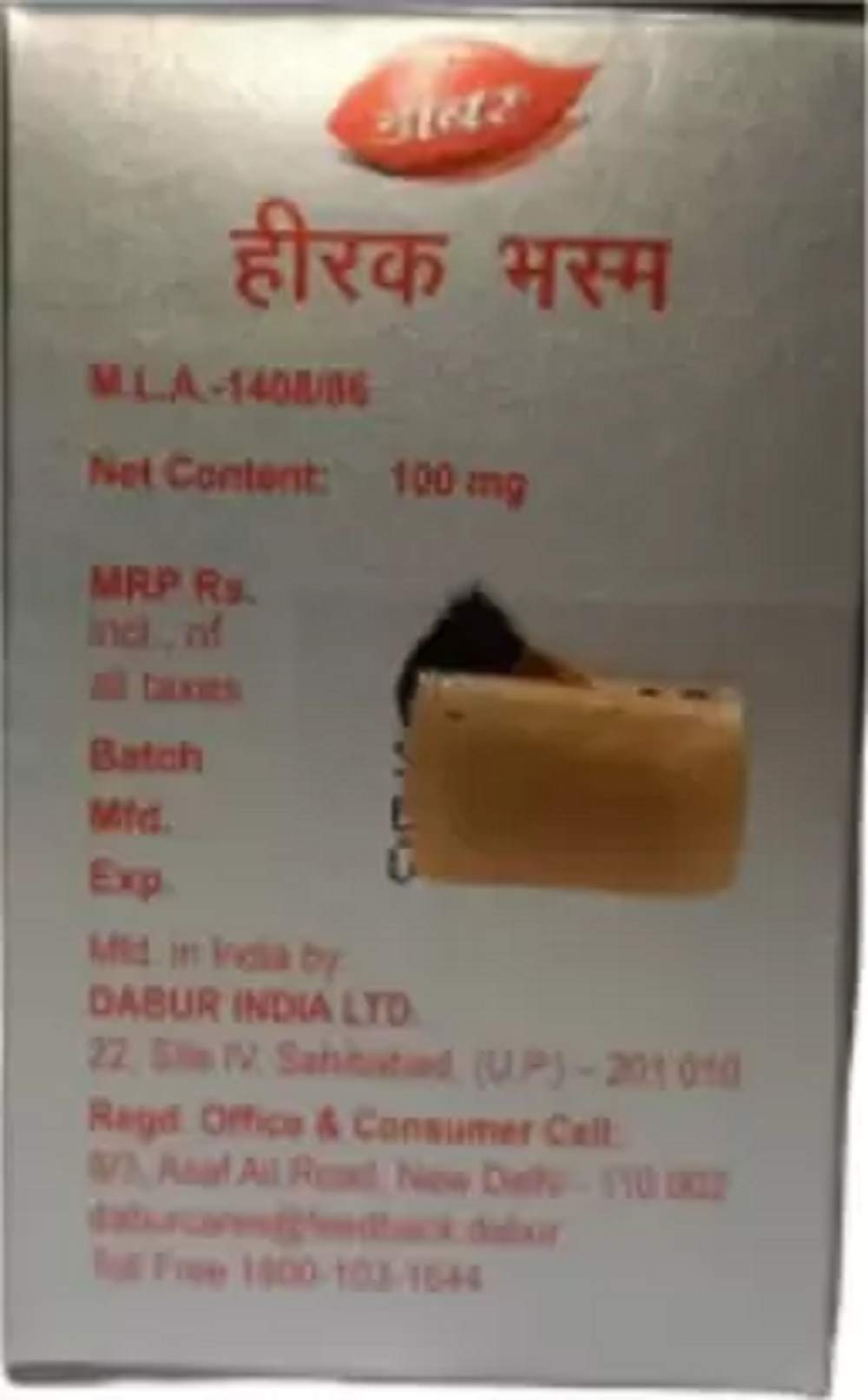 HEERAK BHASMA by DABUR is a ayurvedic preparation prepared from diamond. It is immunomodulator strengthens body and mind cardioprotective and anti-anginal.