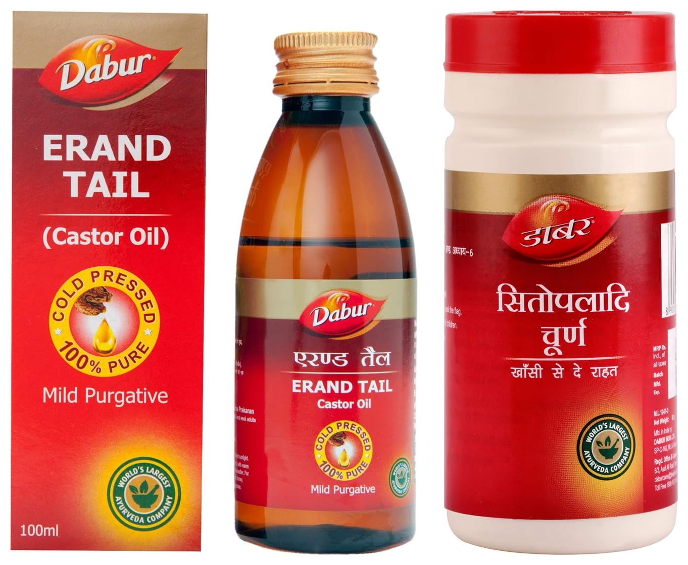 Dabur Sitopaladi Churna - 60 Gm & Dabur Erand Tail Pure Cold Pressed Castor Oil Provides Effective Relief From Constipation - 100 Ml