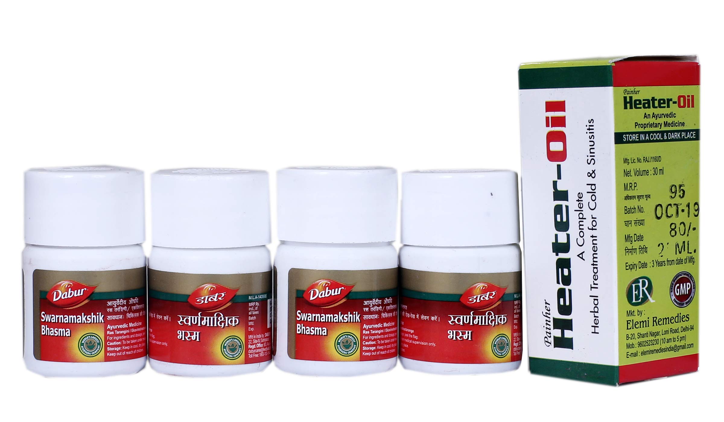 Dabur Swarnamakshik Bhasma 5 Gm Pack of Four (4) With Painher Heater oil