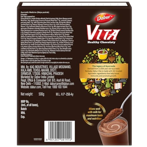 Built on Dabur's legacy of quality trust and experience of 137 years Dabur Vita offers 2X superior benefits of growth and immunity with superiority on taste compared to others in Milk Food Drinks Category. Building immunity among children is a challenging task in these difficult times. Dabur Vita comes here as a solution with 30+Ayurdevic boosters which not only promotes bones & muscular growth supports brain health learning & concentration but at the same time helps in building TNF alpha. It regulates the immune cells and helps boost immunity. Dabur Vita is tested to significantly increase the activity of TNF alpha as compared to other leading marketed health drinks. Despite been an ayurvedic based drink it is chocolaty in taste which kids relishes the most.