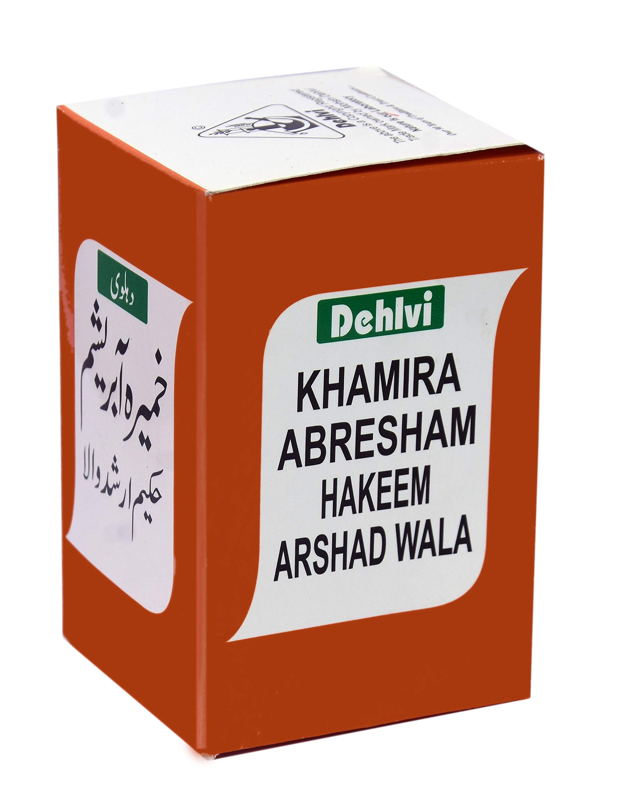 About Dehlvi Khamira Abresham Hakim Arshad WalaKhamira Abresham Hakim Arshad Wala is an Unani medicine containing ingredients derived from plant animal and mineral resources. It is a semi-solid preparation which is particularly used for general debility. Dehlvi Abresham gives strength to the brain and heart. It is prepared by adding a detection of herbal drugs or powdered drugs to a base (Qiwam) made up of sugar or sugar with honey. Other than herbal ingredients animal and mineral origin drugs are also mixed. After preparation of solution it is so saturated that it becomes frothy and color turns white due to mixing the air constituents in it.Khafgan (Palpitations) rapid strong or irregular heartbeat due to agitation exertion or illnessZauf-e-Aza-e-Raisa (Weakness of principal organs such as Heart Brain and Liver)Malikhoolia (Melancholia) feeling of deep sadnessNaqahat (Asthenia) abnormal physical weakness or lack of energyDosage Dehlvi Abresham should be taken orally in dose of 3-5 grams.It can be taken once or twice a day depending on condition.It may be given before breakfast and in the evening.It may be taken with arq gaozaban 125ml or water.Side-effects: Dehlvi Khamira Abresham Hakim Arshad Wala is safe without any known side-effect.PrecautionsDo not take Dehlvi Khamira Abresham Hakim Arshad Wala during pregnancy without consulting doctor.Avoid fried and spicy food.It is not suitable for a diabetic person due to sugar content.
