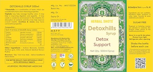 Herbal Hills Detoxhills Syrup Herbal Detox Formula and Body Cleanse Supplement 500 ml Shots