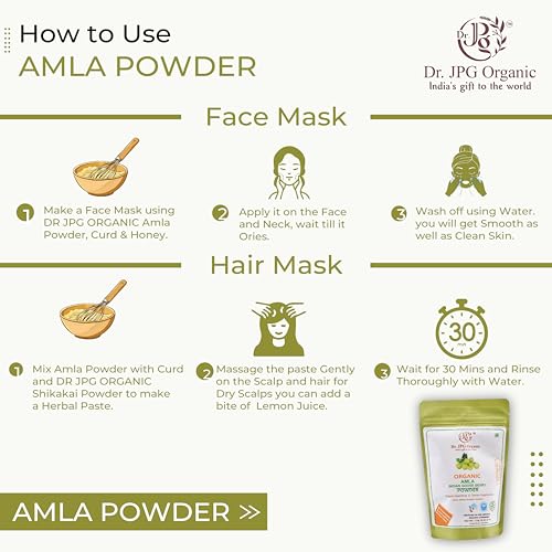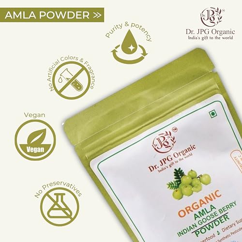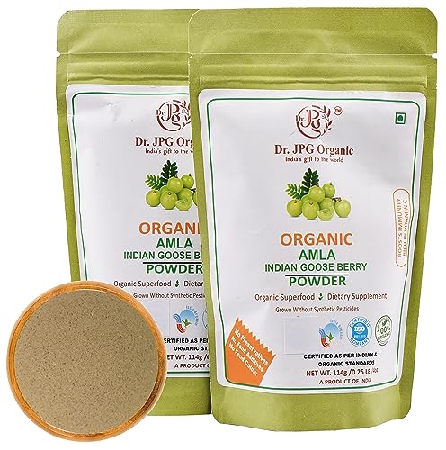Dr. JPG Organic Amla Powder For Drinking and Hair Growth/Indian Gooseberry/INDIA Organic Certified / 114g Pack of 2