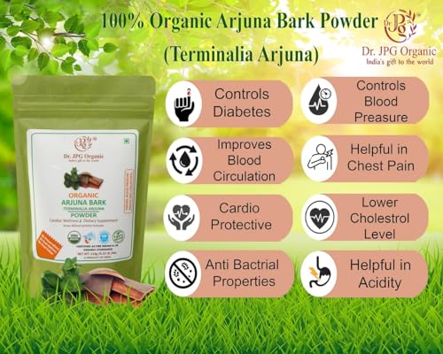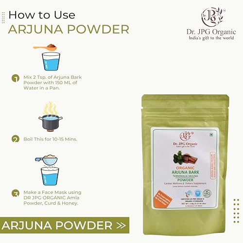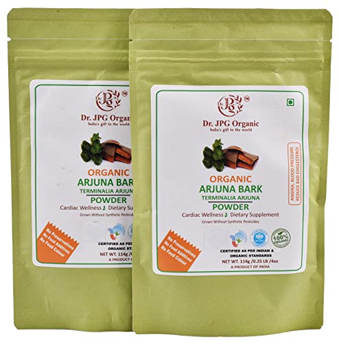 Dr. JPG Organic Arjuna Powder For Manages Cholesterol Level Promotes Healthy Metabolism/Terminalia Arjuna/INDIA ORGANIC Certified 114g Pack of 2