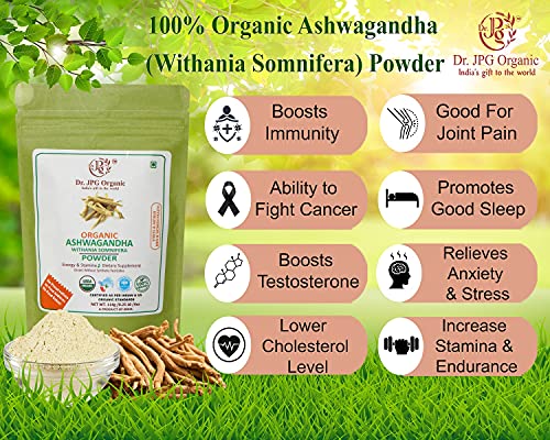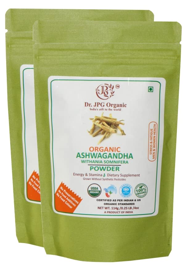 Dr. JPG Organic Ashwagandha Powder 228g / Withania Somnifera/INDIA ORGANIC Certified / 114g Pack Of 2.