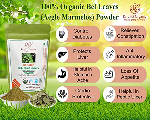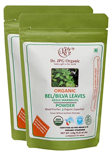 Dr. JPG Organic Bael/Bel Patra Powder-For Detoxification-228g-Aegle Marmelos-INDIA ORGANIC Certified-(114g X 2PC=228g)