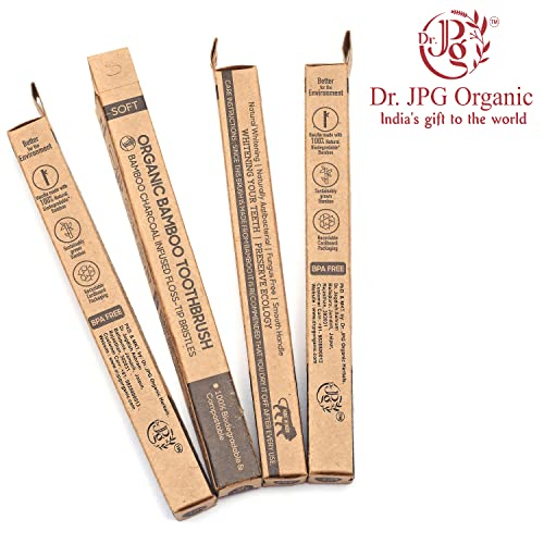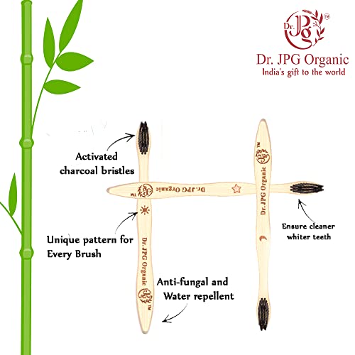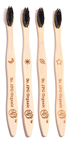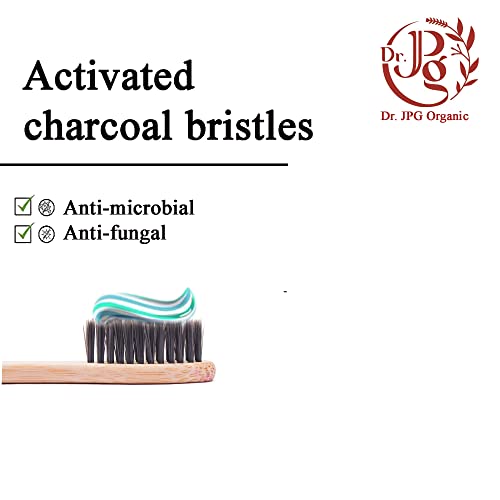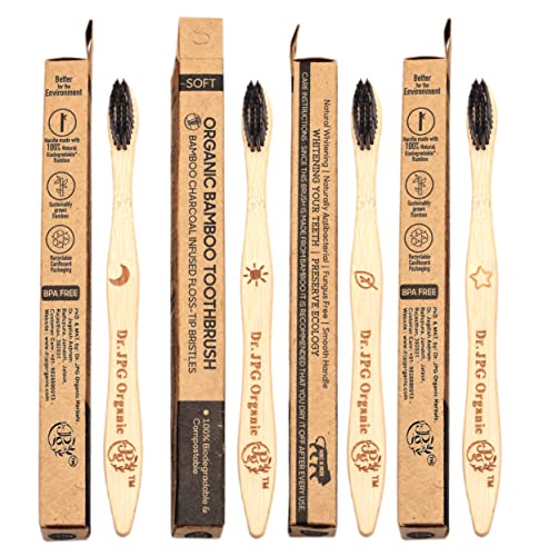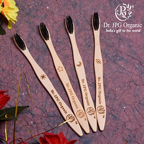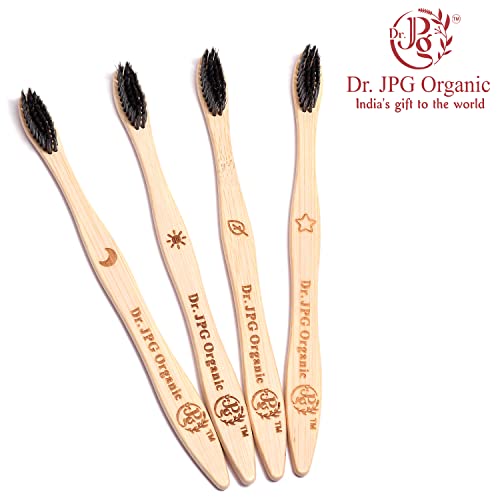 Dr. JPG Organic Bamboo Toothbrush with Charcoal Soft Bristles for Adults Pack Of 4. (Charcoal Brush For Adult)