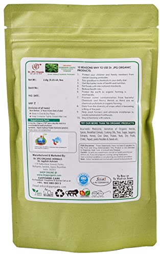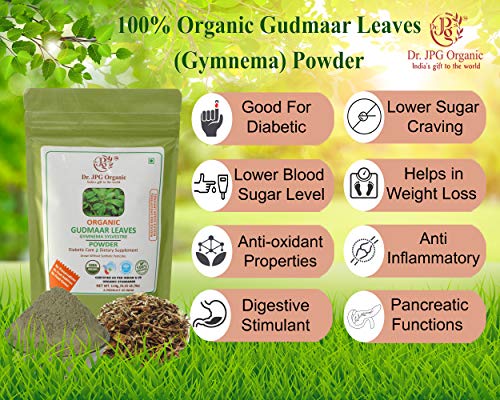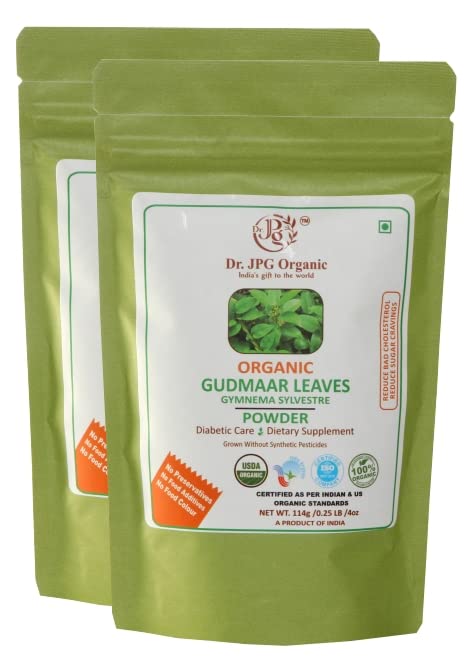 Dr. JPG Organic Gudmar leaf/Leaves Powder- For Bad Cholesterol & Sugar Craving-228g-Gymnema Sylvestre-INDIA ORGANIC Certified-(114g X 2PC=228g)