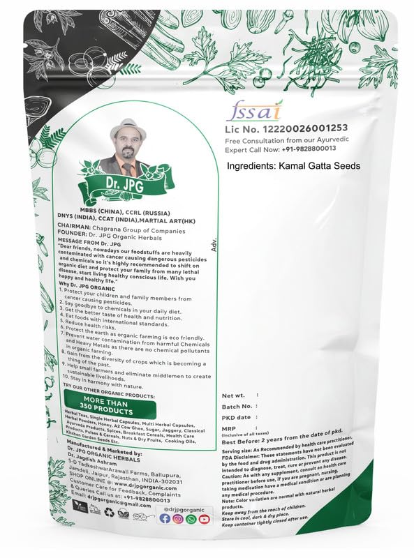 Dr. JPG Organic Natural Lotus Seeds/Kamal Gatta seeds 200g / Nelumbo Nucifera/Approx 240 Seeds/ISO & GMP Certified.