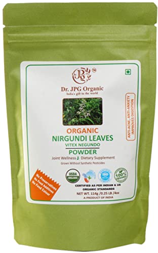 Dr. JPG Organic Nirgundi Leaves Powder For Joint Pain 114g / Vitex Negundo/INDIA ORGANIC Certified (Pack Of 1)