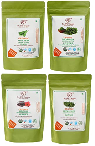 Dr. JPG Organic Skin Care Combo Neem Hibiscus Aloevera Moringa Powder (456g)-USDA ORGANIC Certified-INDIA ORGANIC Certified-100% Organic | Each Pouch Contain 114g.